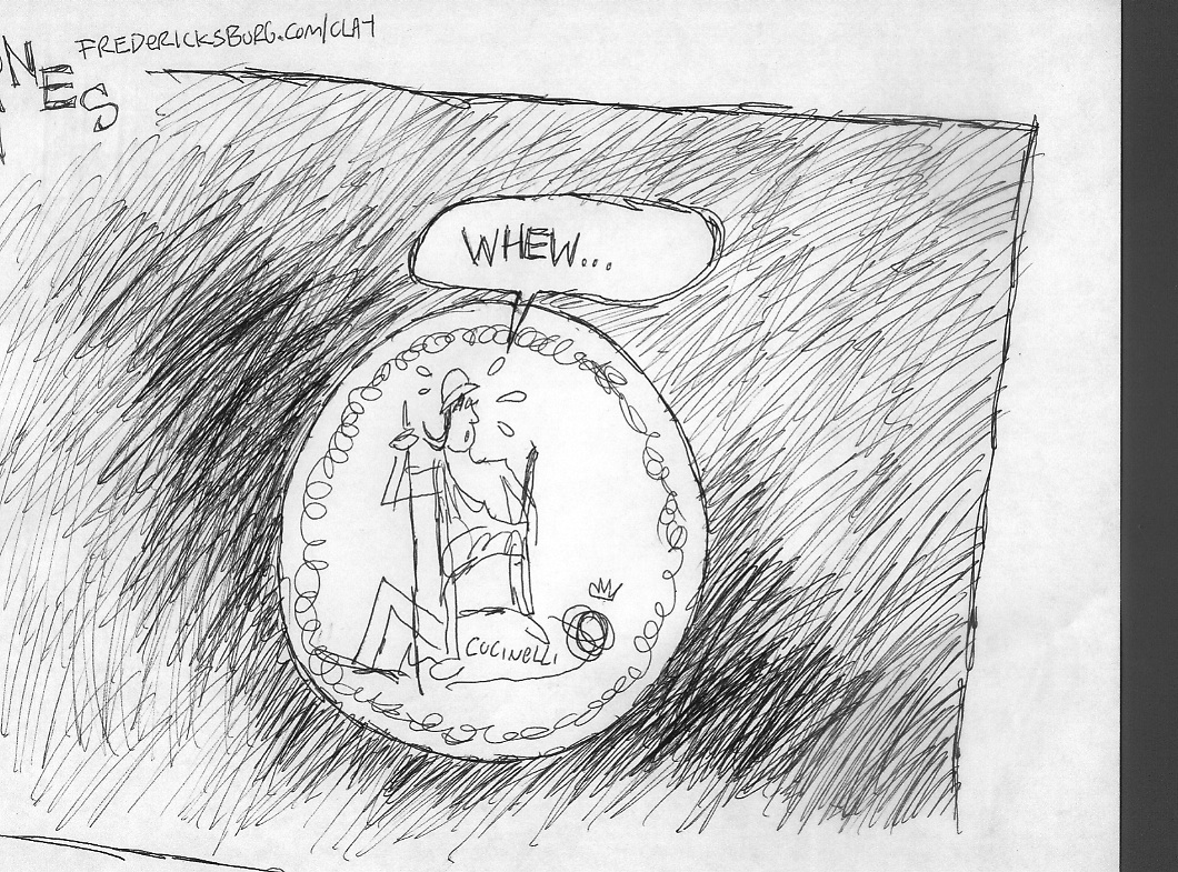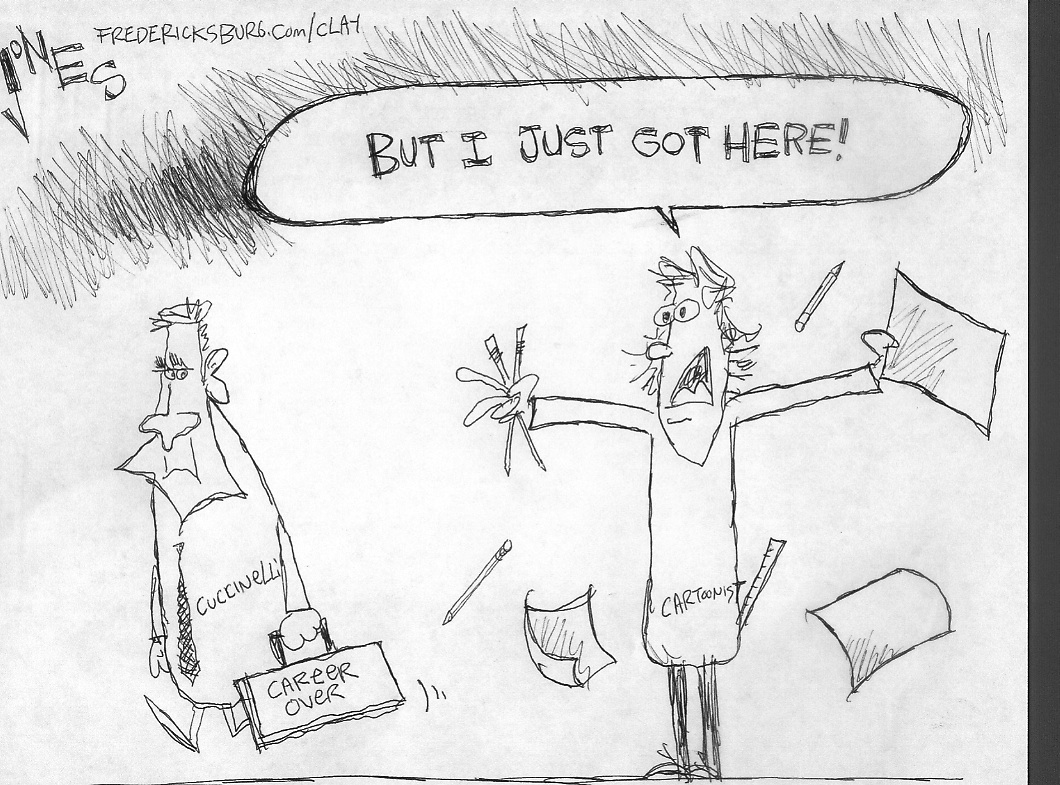 I posted TEN blogs for fredericksburg.com. That was a lot of work. A few of my colleagues took some of the originals so don’t be surprised to see some of those pop up on social networks. Here’s a rundown of each cartoon I drew tonight. No color. They’re all rough.