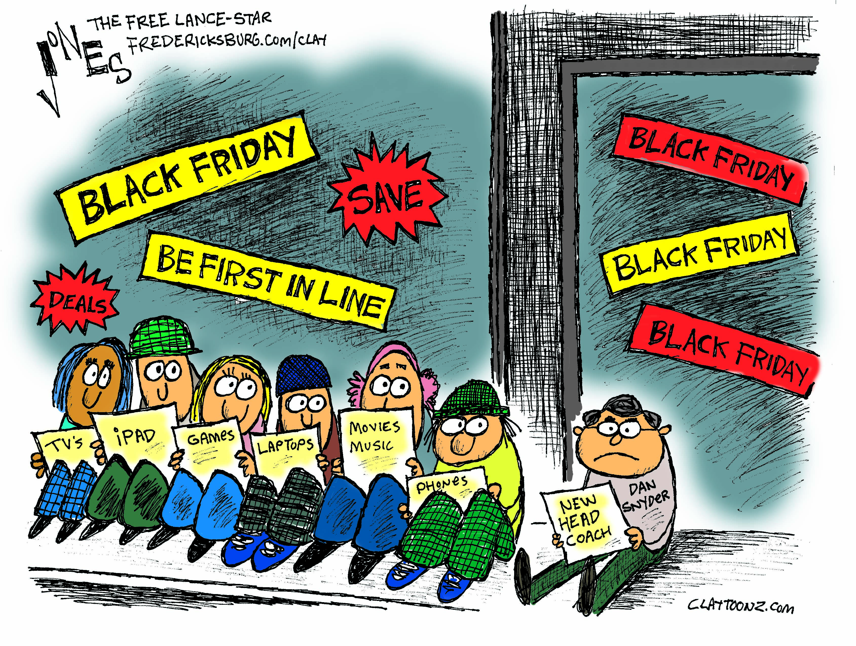 Sorry to pick on Black Friday again. I didn’t think this cartoon was running until Sunday and then my editor said he’d put it on Friday’s page. I was cool with that. I should have blogged this hours ago.