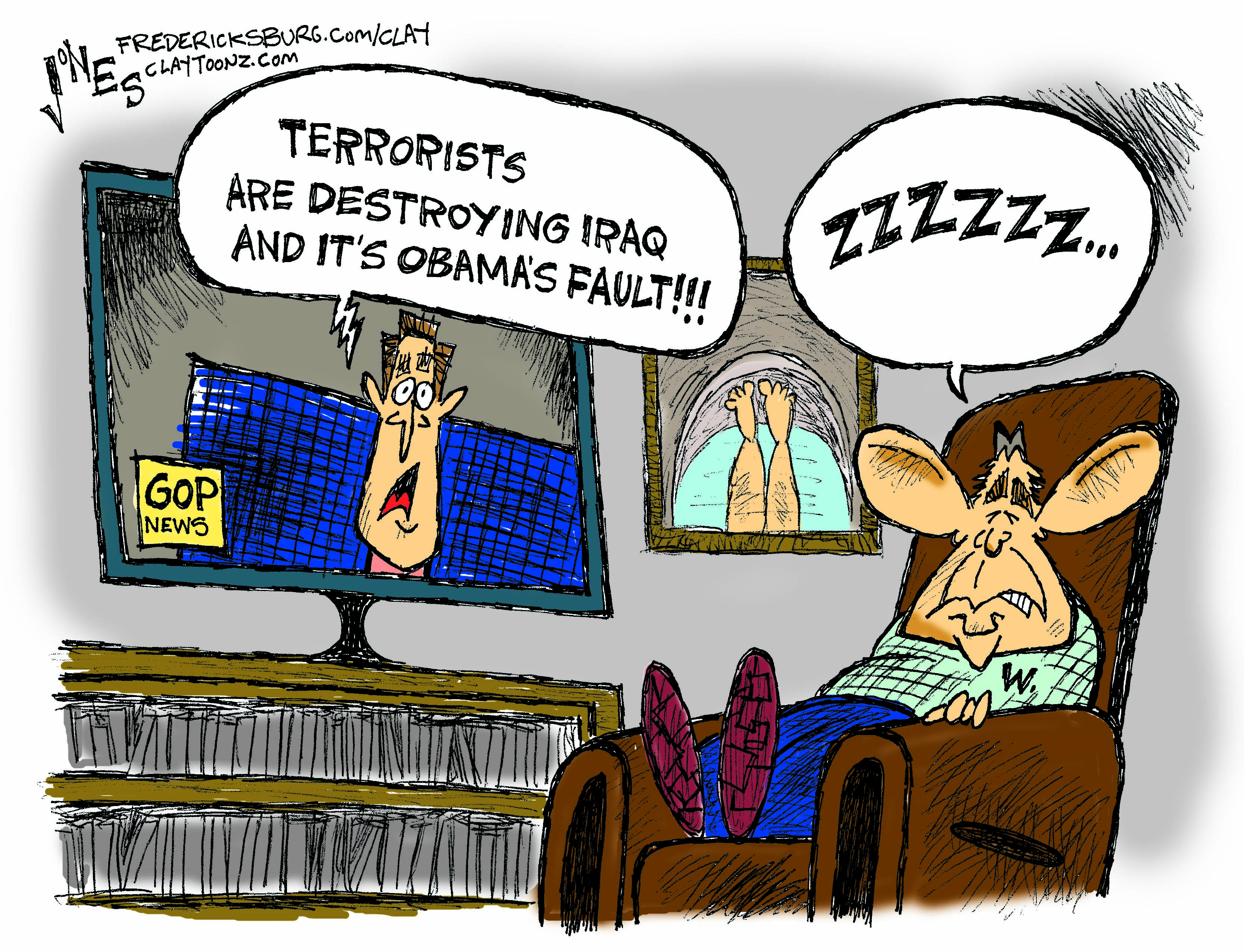Yes, terrorists have taken Fallujah. Before we invaded Iraq there weren’t any terrorists in Iraq. There’s still a mess there the United States created all while George W. Bush is sitting in a bathtub trying to decide how to paint his toes.