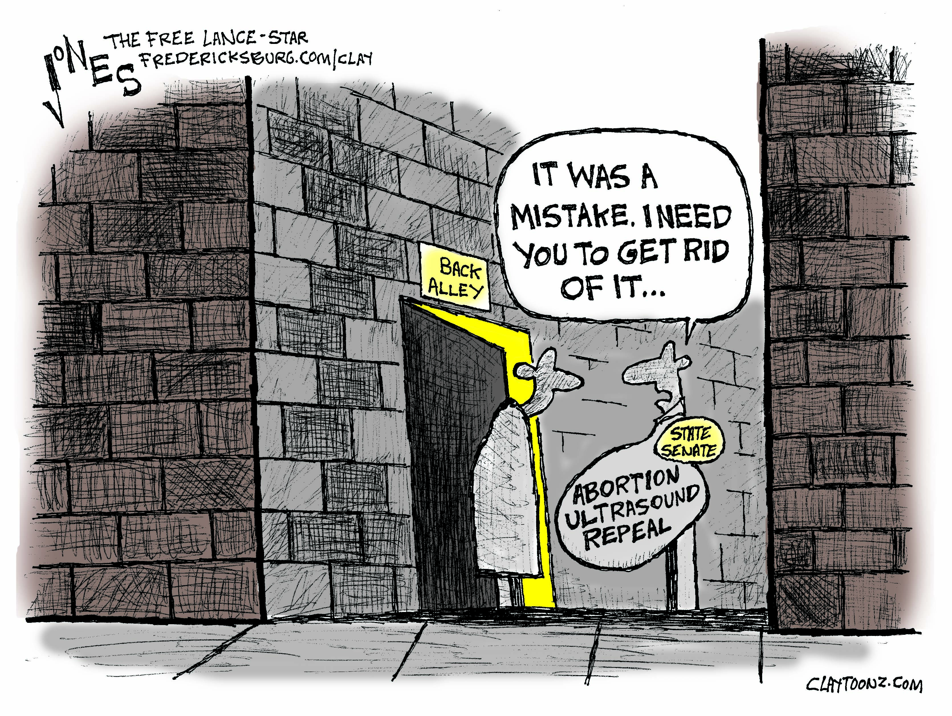 Last week a Democrat in the State Senate introduced a bill to repeal the ultrasound law. It passed but one conservative Democrat said they voted wrong, so they voted again. It passed again but ANOTHER conservative Democrat said they too had voted wrong. I guess that “yay or nay” thing can be very confusing when you’re dragging knuckles. The confused Democrat demanded another opportunity to change his vote, or to vote again. I guess he made a mistake and wanted to correct it. See? Irony. Well they didn’t vote again.