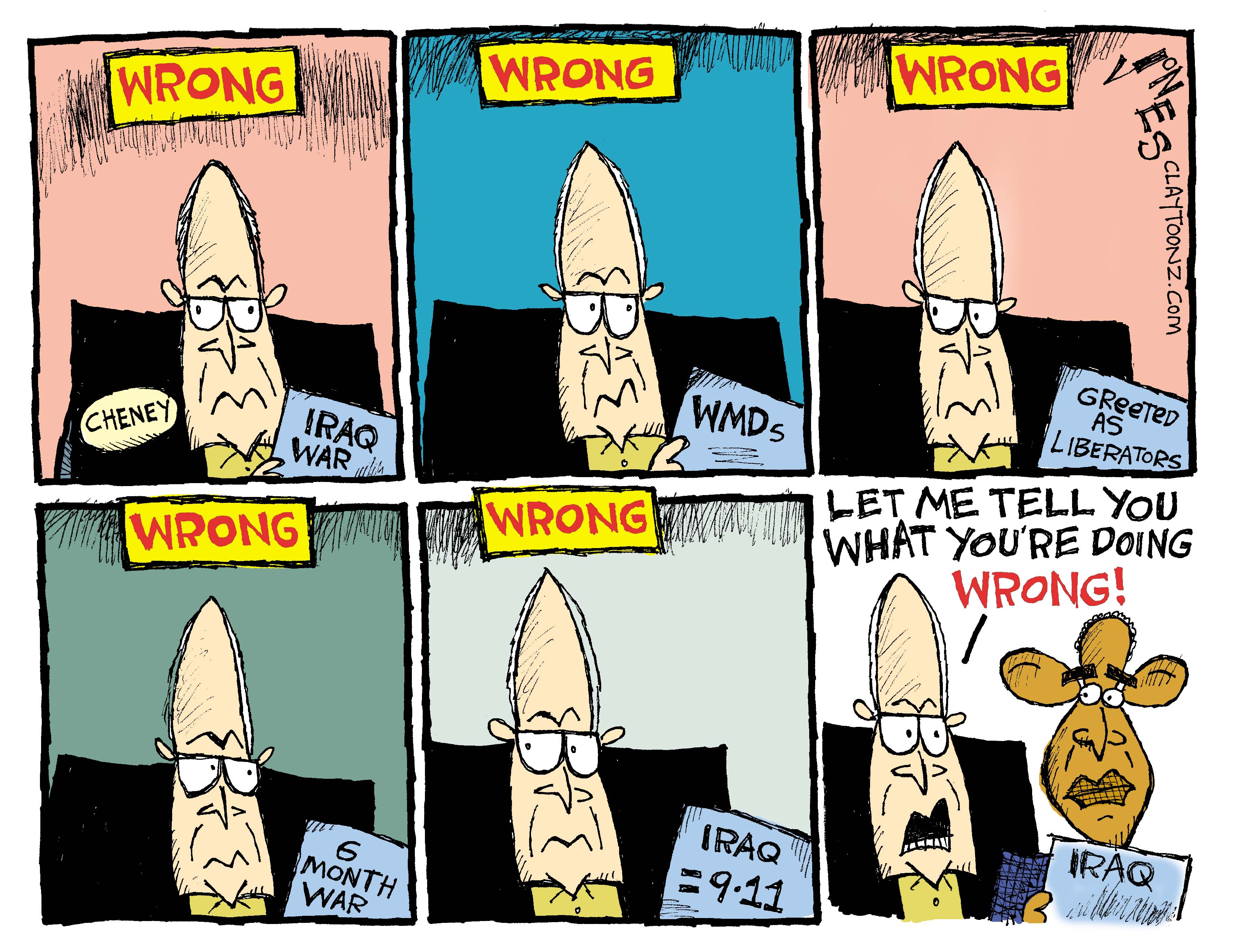 Cheney isn’t the only one. In addition to the talking heads on Sunday morning news show, I see several friends on social media complaining about the way Obama is handling Iraq. These guys were wrong about everything concerning Iraq. I think we’ve had all the advice we can afford from these neocons.