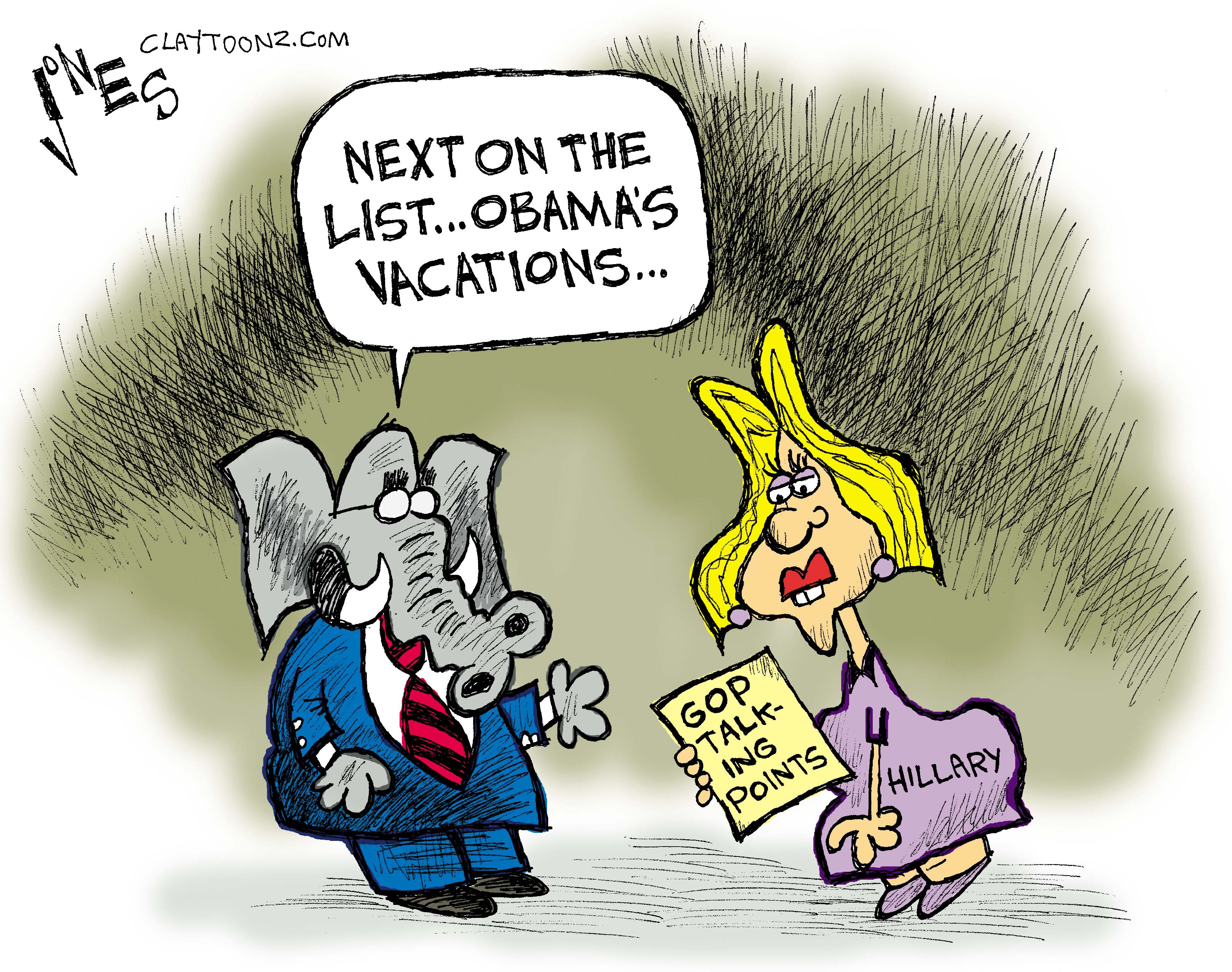 The talking point for this week are the number of vacations Obama has taken and how many rounds of golf he’s played. Obama could spend the rest of his term on vacation and he probably still wouldn’t catch up to George W. If you point the hypocrisy out to conservatives they don’t get it. They don’t understand. They give the same blank expression of cluelessness I get from my Beagle when I ask him who got in the trash. Only difference is my Beagle is only playing dumb. Conservatives….eh. We are talking about a party that looks for leadership from Sarah Palin.