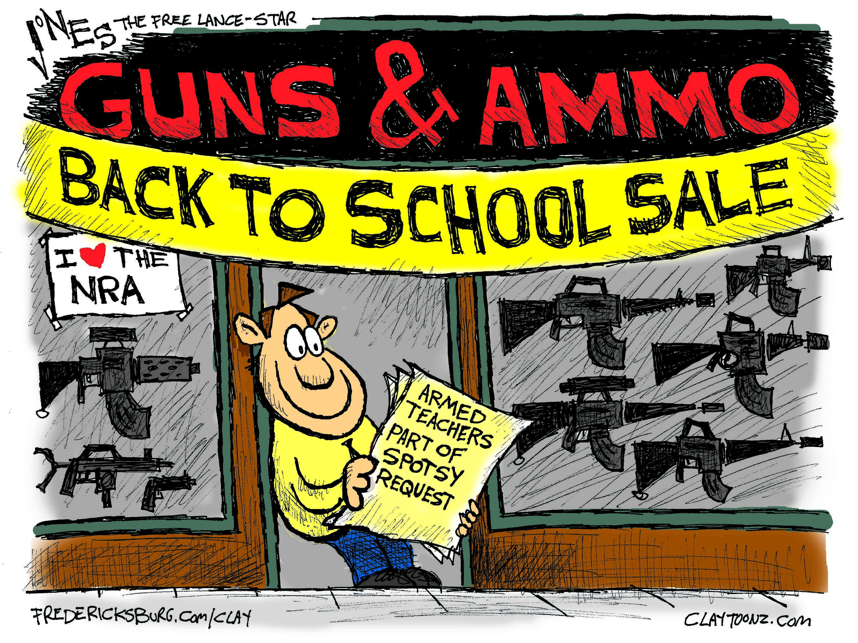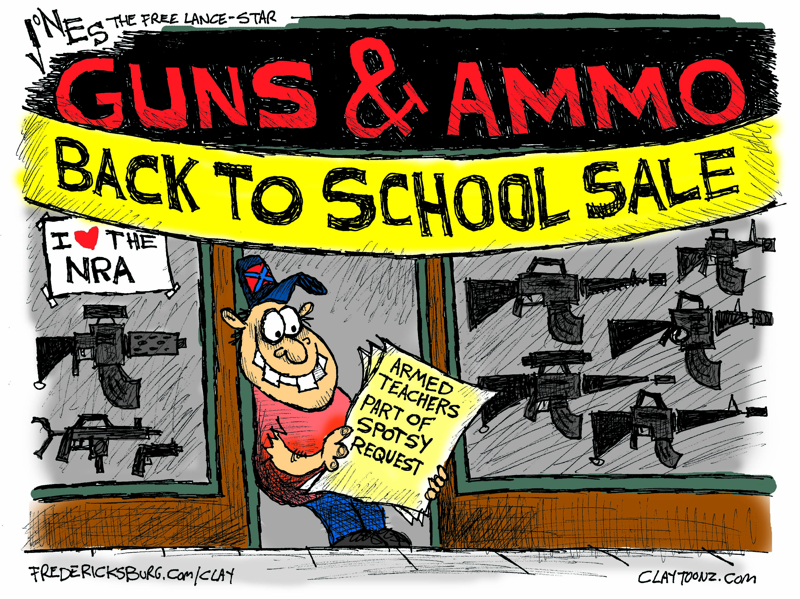 I had to adjust this cartoon after I turned it in.  The editor was afraid the guy in the doorway was representing teachers and I had him looking too Rednecky.  I didn’t mind changing it but I do like the “Rednecky” version better.