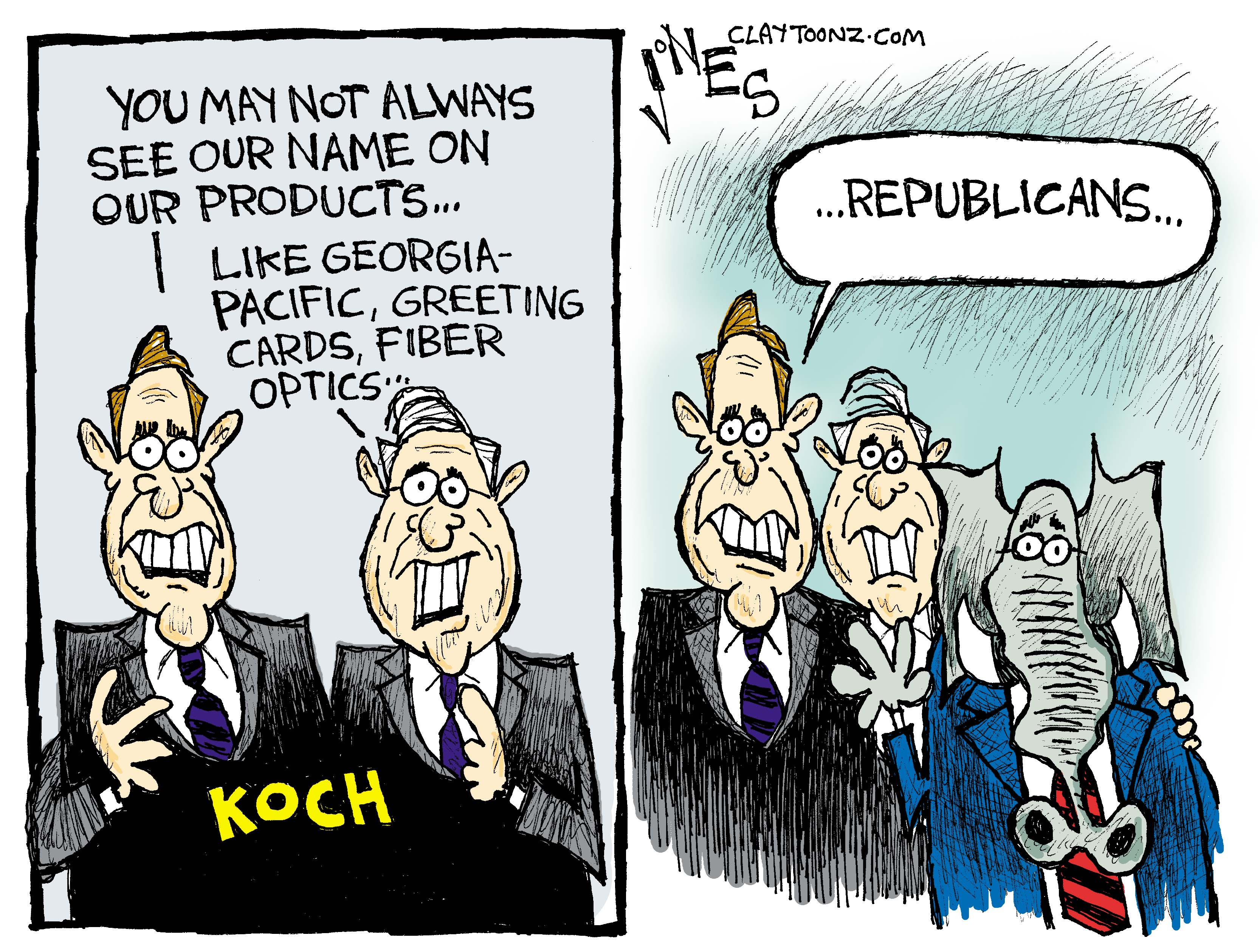 I figured with this cartoon most readers will see the joke coming before they get to it, but how I could I resist doing a cartoon when Koch made it so easy?