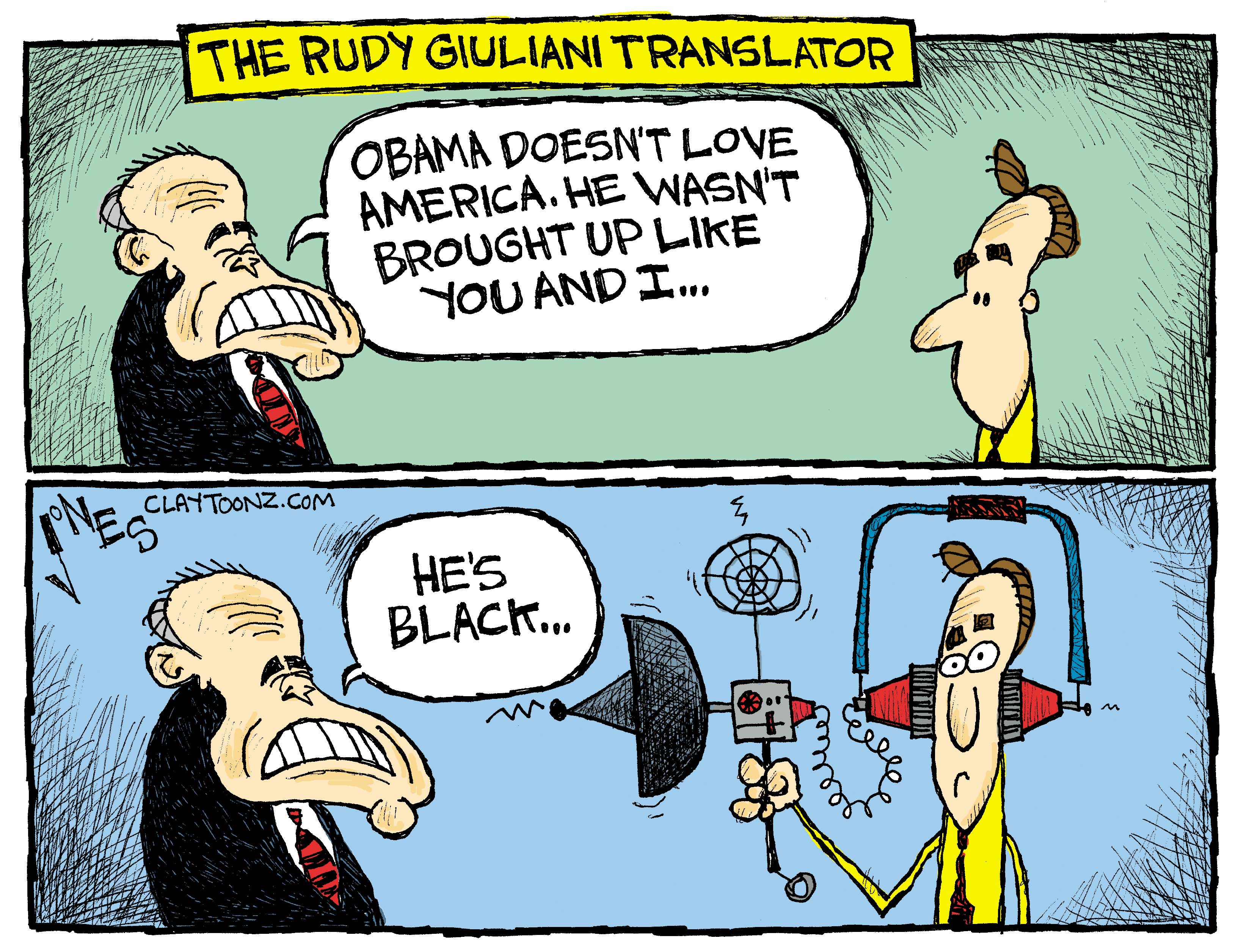 Since Rudy Giuliani never had a conversation with the president over his love of America (so, Mr. President, I was wondering…do you love America? Nope, I hate it along with cheese cake and 9/11) where does Giuliani actually get this idea? He doesn’t have the idea. Giuliani is practicing covert racism (also while making stuff up which has been the Republican modus operandi over the past six years).