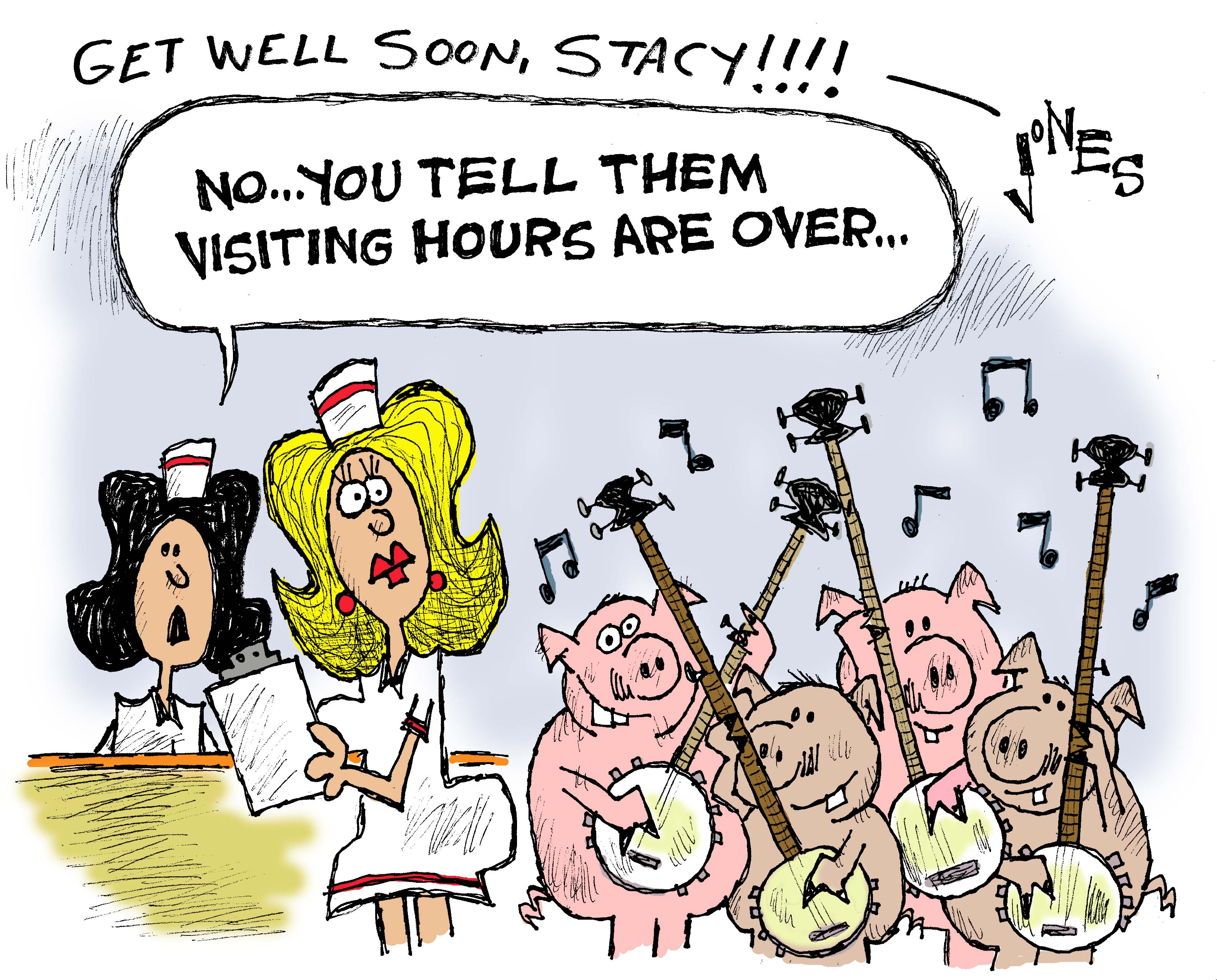 My friend and fellow cartoonist Stacy Curtis is recovering from a stroke. Many of his cartoonist friends are drawing pig and banjo themed cartoons to encourage him to get well soon. I admit I don’t understand the theme but here you go, Stacy.