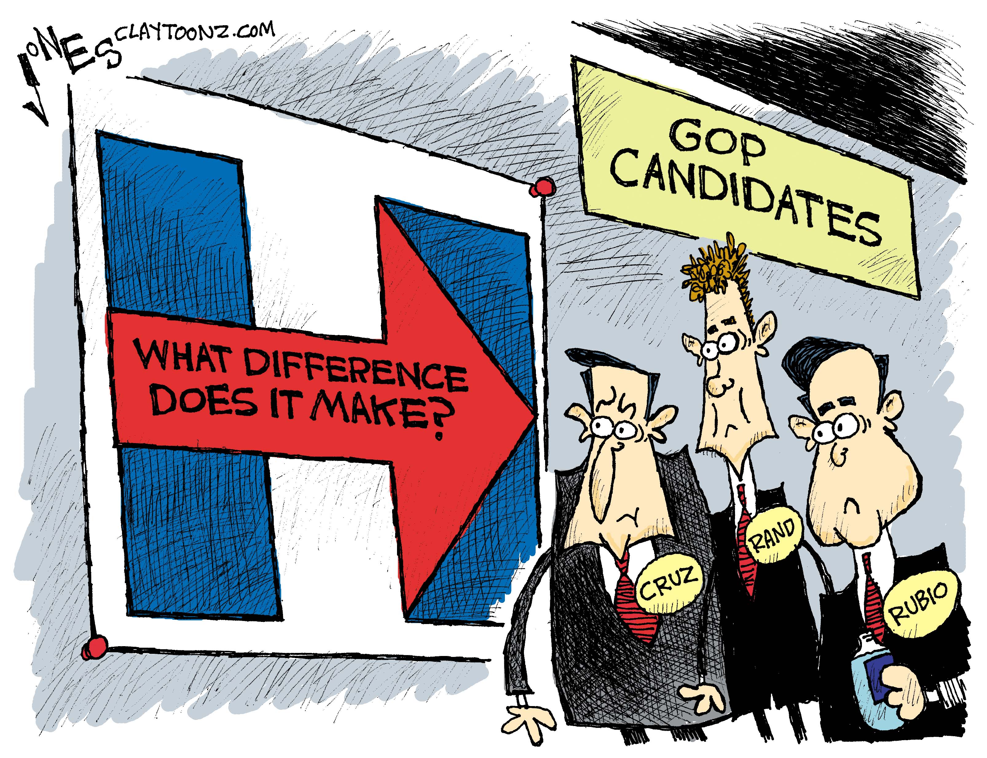 Speaking of creative: There’s been much discussion about Hillary’s new logo. A lot has been made that it’s pointing to the right. I’m not sure it’s a very creative logo but I like it because it’s very simple for a cartoonist to draw. A great logo should be simple and identifiable like the logo for the New York Yankees, Nike, McDonalds, Coca-Cola, Apple or the Swastika. Obama’s logo might be the best greatest in political history while the greatest political slogan has got to be “I Like Ike.”