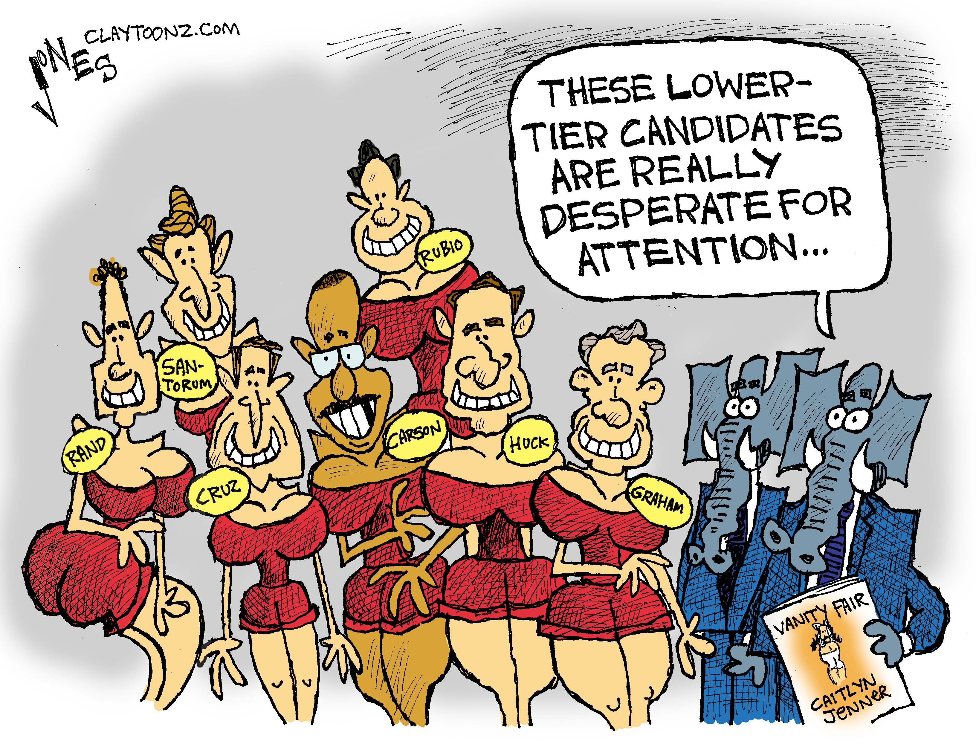 Yes, I have a demented sense of humor. But I’d rather have this demented sense of humor than draw a cartoon about how the stage isn’t big enough for the number of candidates or draw a clown car.