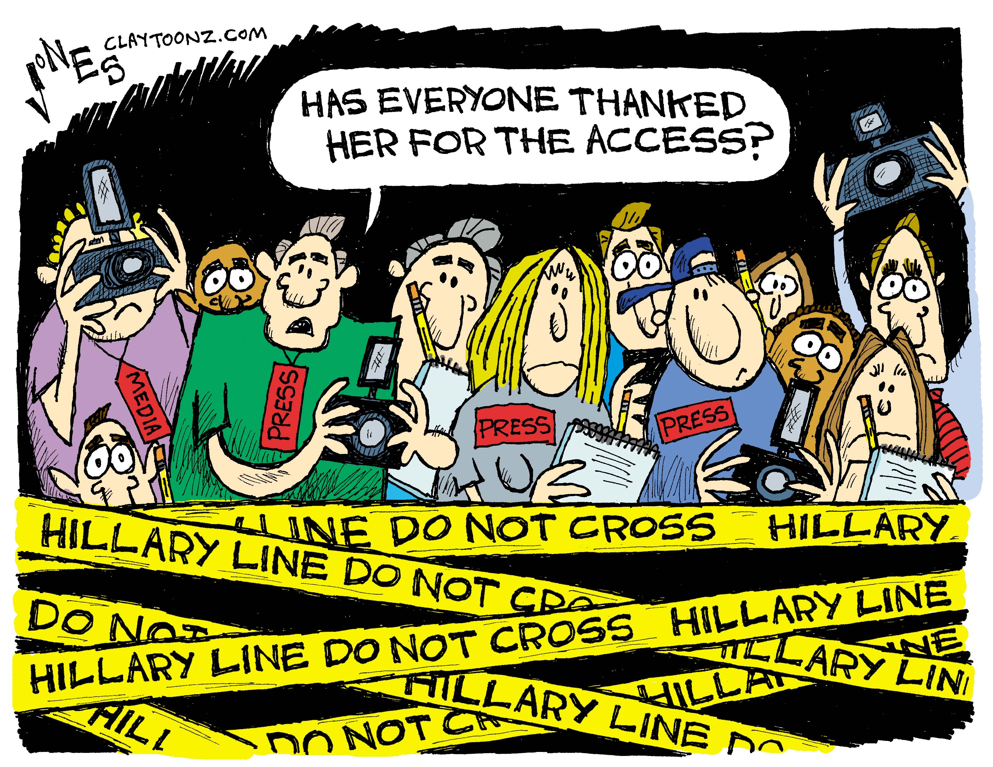 The other day Hillary was walking down a street and her staff had a rope the media weren’t allowed to get past, and the staffers walked the media down the street like dogs.