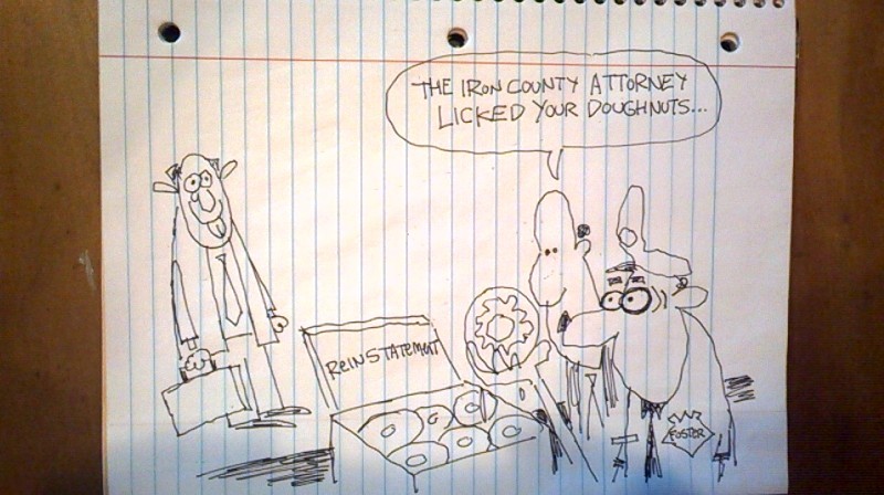 An Iron County (Utah) deputy recently fought being laid off. A committee for the county overturned his firing and reinstated him to the sheriff’s department. A county attorney decided to appeal. I came up with this idea which involved the story of the girl who’s famous (though I’ve never heard of her) who said she hated America and licked doughnuts.