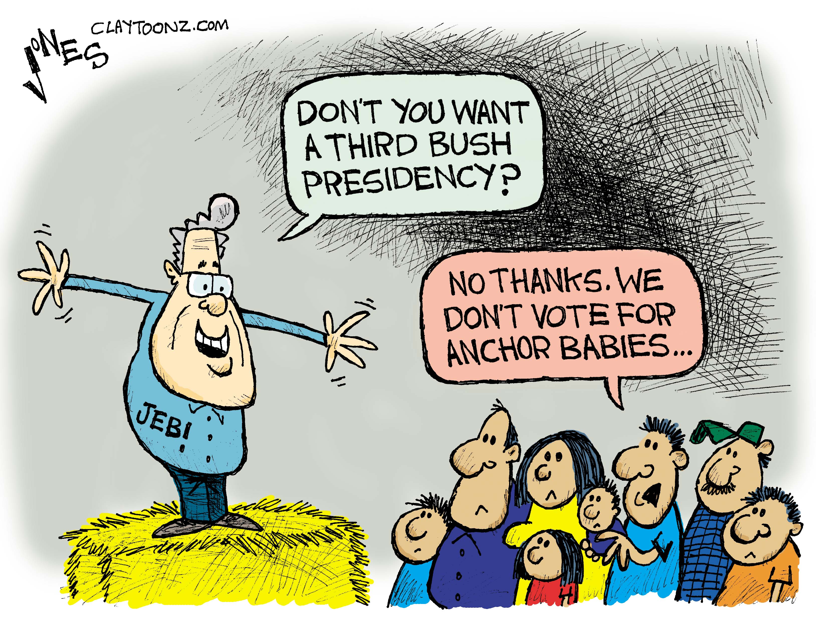 Jeb is the biggest anchor baby. As in he’s trying to get a job based on his name. His brother used all his daddy’s friends’ money. They were in his administration. They were the lawyers fighting the Florida recount which gave him the presidency when he got fewer votes. Today Jeb is using his daddy’s friends’ money. They’re all his advisers. Jeb says he’s his own man. His actions show different. He is a Bush. He’s just like the other Bushes and his presidency will be a fourth Bush term.