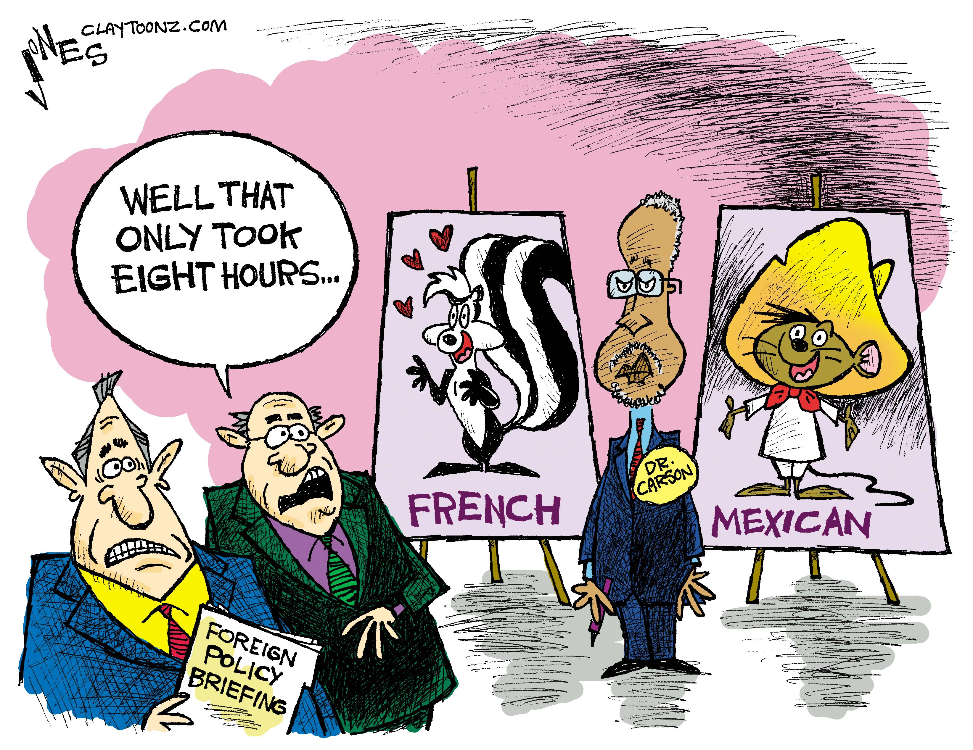 Carson later explained that Mr. Clarridge is not one of his advisers. He’s just someone who gives him advice on foreign policy. His campaign suggested that Clarridge is an old codger who’s losing his mental capacity. That sounds more like a description of their candidate.