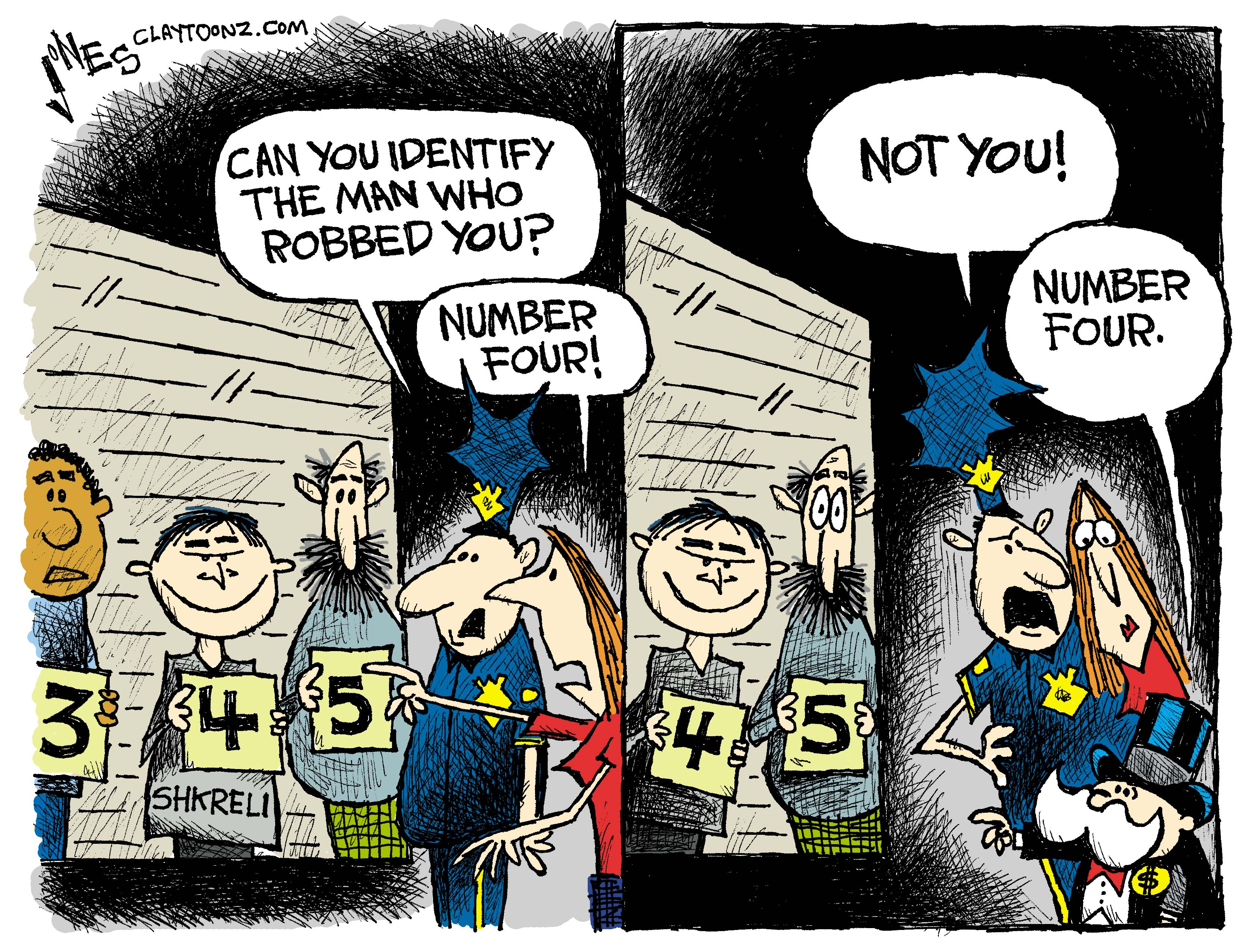 I saw three ways to go with a cartoon on the subject. First, I could point out what an evil, greedy, smug little bastard the guy is. Nah. That’s kinda obvious and I did something like that months ago. Two, I could point out how the world is celebrating his arrest. I kinda liked that and had an idea for it but I wasn’t in love with it. Third, I could point out how it’s legal to rob from the poor but not the rich. A lot of other people have made that point but I still liked it. I thought I could put my own spin on it.