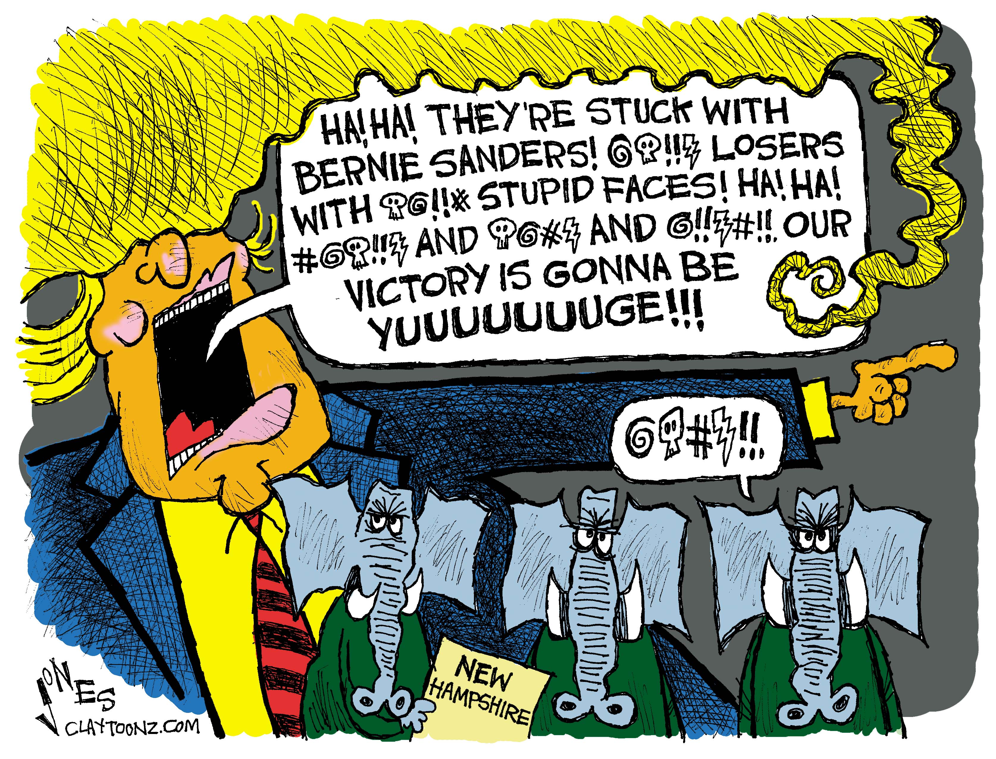 Ted Cruz came in third despite Donald Trump calling him a “pussy.” This blog’s just full of bad words today. New Hampshire is a place where the voters are a different kind of weird. One voter said she was deciding between Sanders and Fiorina which makes you wonder what issue was most important to her (free college for fetuses?). Even the Republicans aren’t all Jesus Freaks. Cruz is headed down south and that’s his base, crazy gun-toting racist bible thumpers. I still believe this race is between Cruz and Trump. With South Carolina being the land with a history of dirty campaign tricks, Cruz should feel at home.
