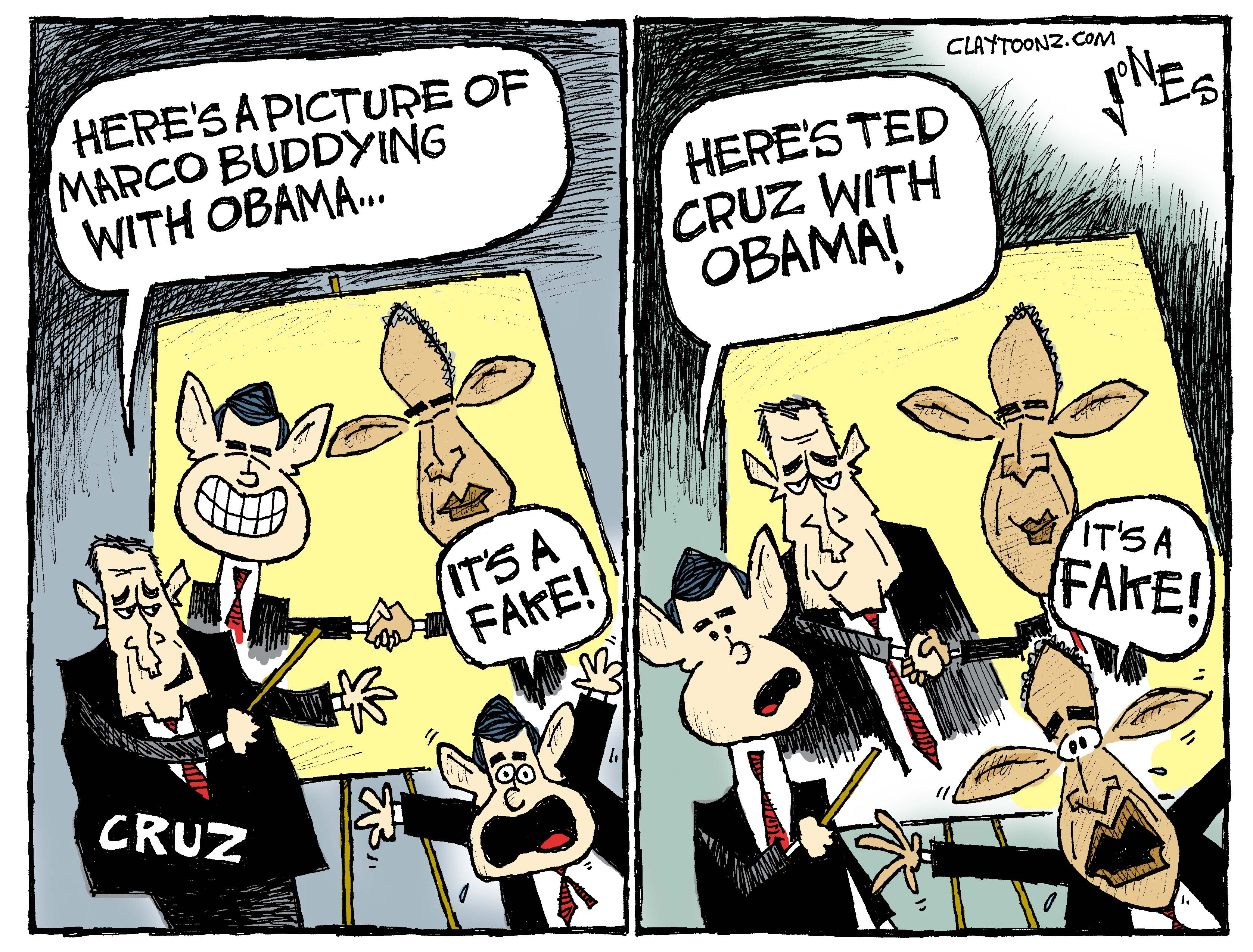 Is that what it’s come to? Being seen with the president of the United States can be used against you? Marco Rubio is a sitting United States senator, as is Ted Cruz. It would seem you wouldn’t have a hard time finding a photo of a senator and the president together, even of Rubio despite his rare trips to do his job in Washington. But no. Being seen with Obama can be used against you (ask Chris Christie). And they say the president is the divisive one.