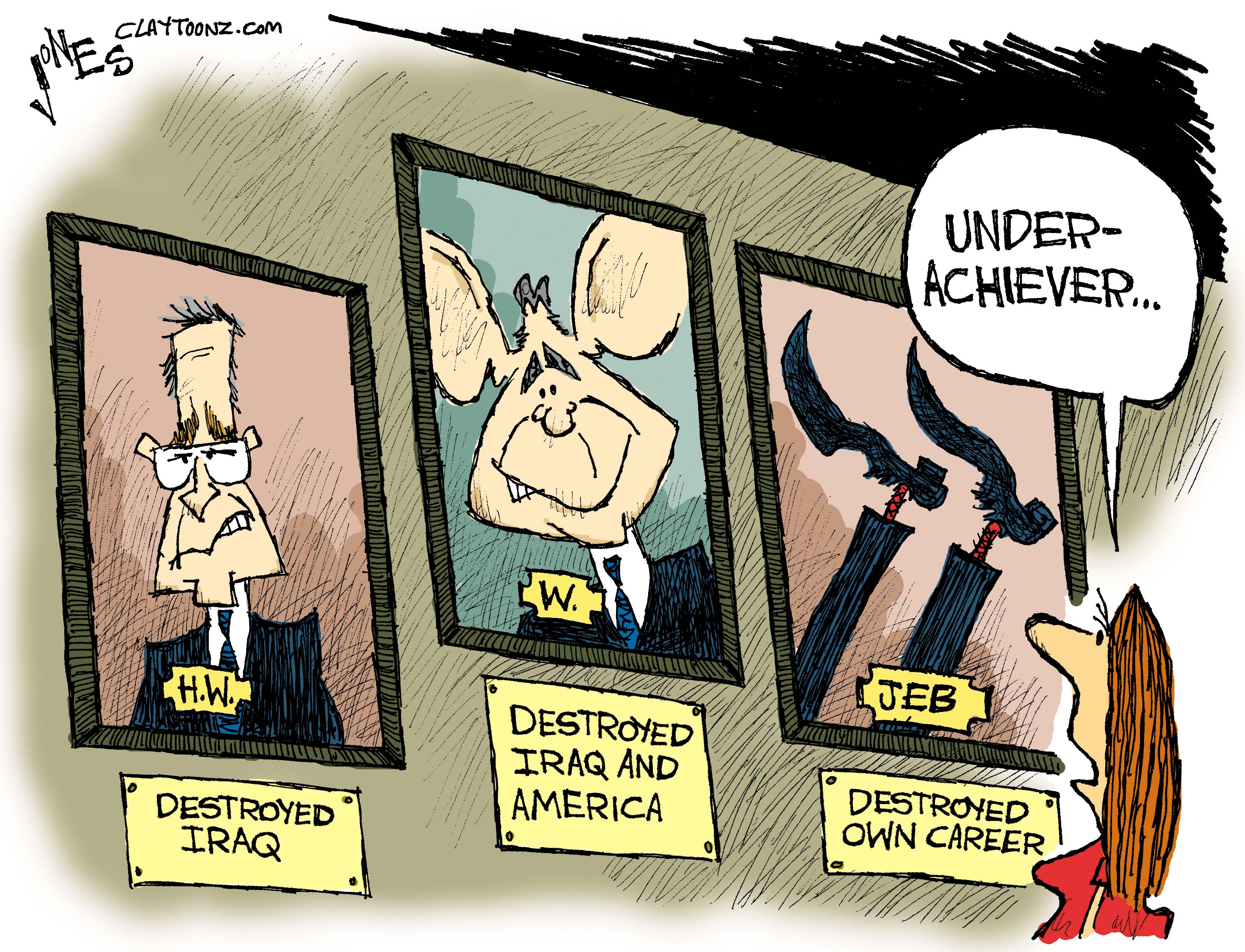 I spent Saturday knowing Jeb Bush would drop out of the campaign later in the evening and I was still considering taking the night off. I thought about putting a Jeb cartoon off until Sunday (published Monday morning). What happened was I ended up drawing two cartoons.