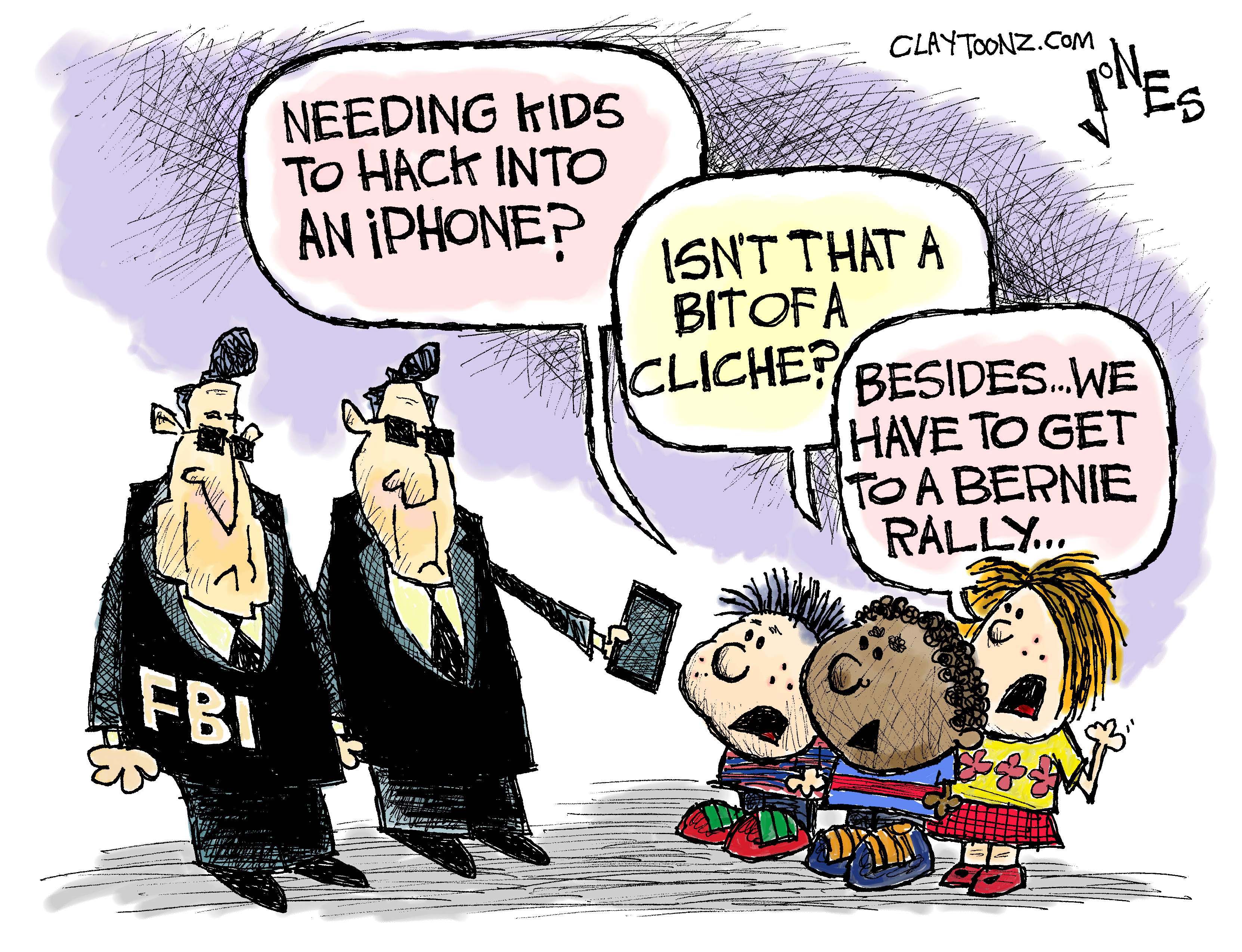 I saw a lot of cartoons and heard a lot of jokes about the FBI needing children to hack into an iPhone and how young voters, and those not old enough to vote, love Bernie Sanders. I thought I’d make fun of the lazy jokes. Ha ha.