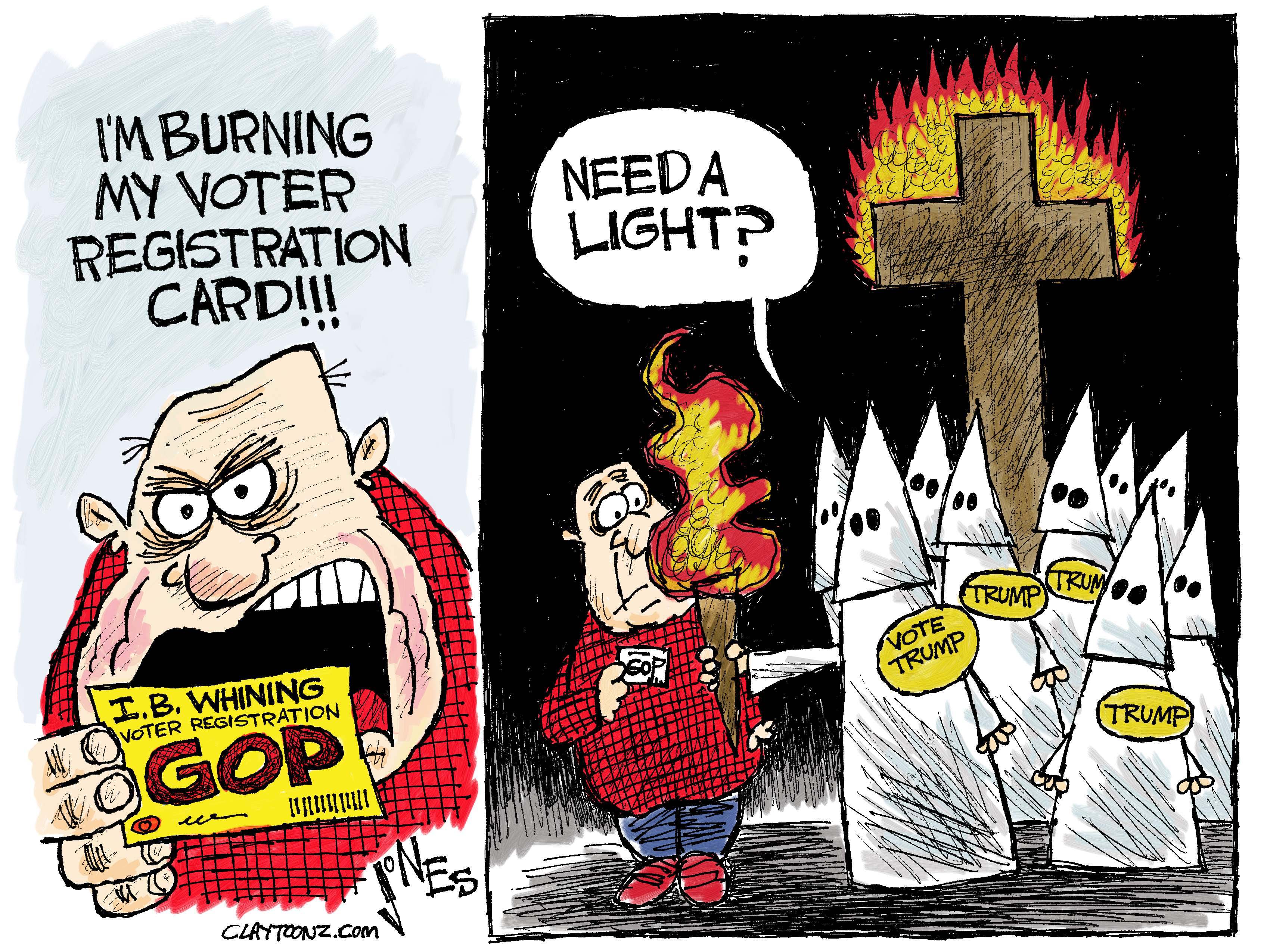 A lot of Republicans are vowing they won’t support or even vote for Trump. Some are even saying they’ll support Hillary. Many are even burning their voter registration cards. I say give them a month, or less. They’ll come around.