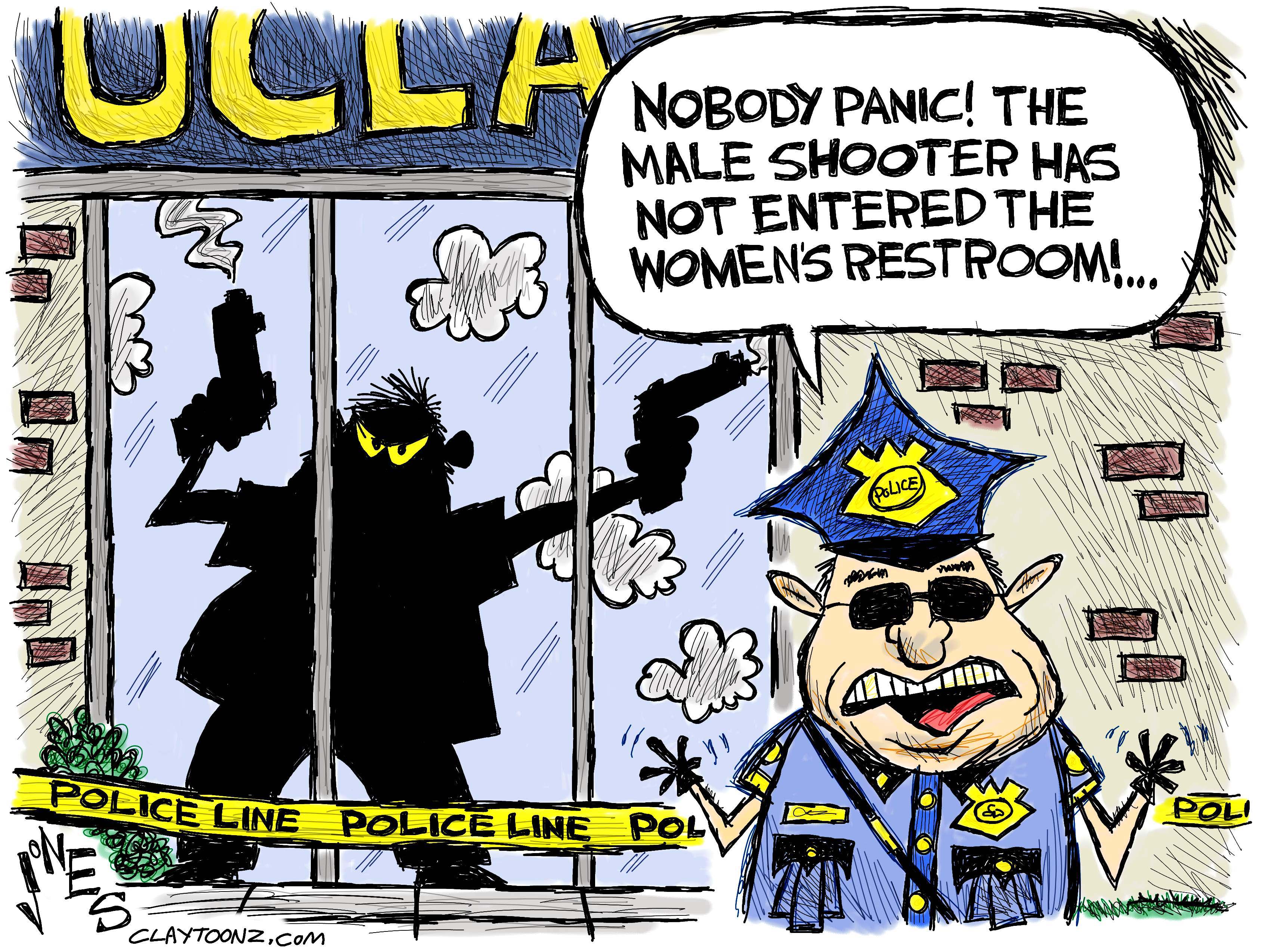 A) CA doesn’t have “rabid bathroom phobia” that I know of. B) It was a murder/suicide, not an active shooter running around.