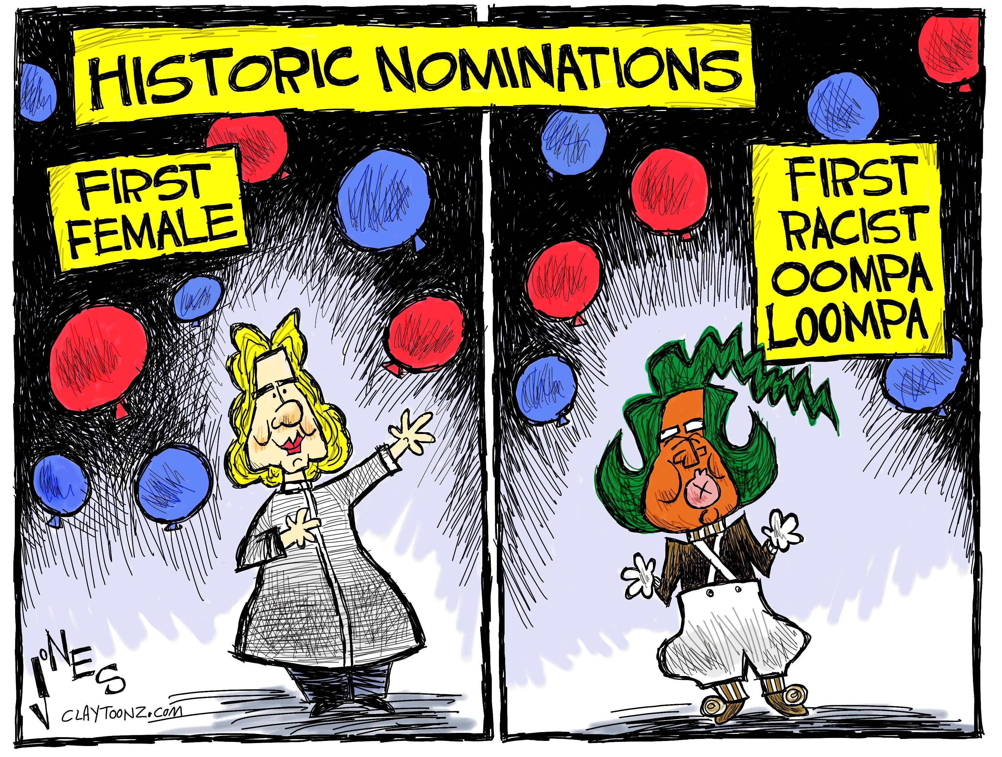 Some might think this cartoon doesn’t make a political point by calling Trump an “Oompa Loompa.” I think it does by just showing how ridiculous of a person the GOP has sank their future in.