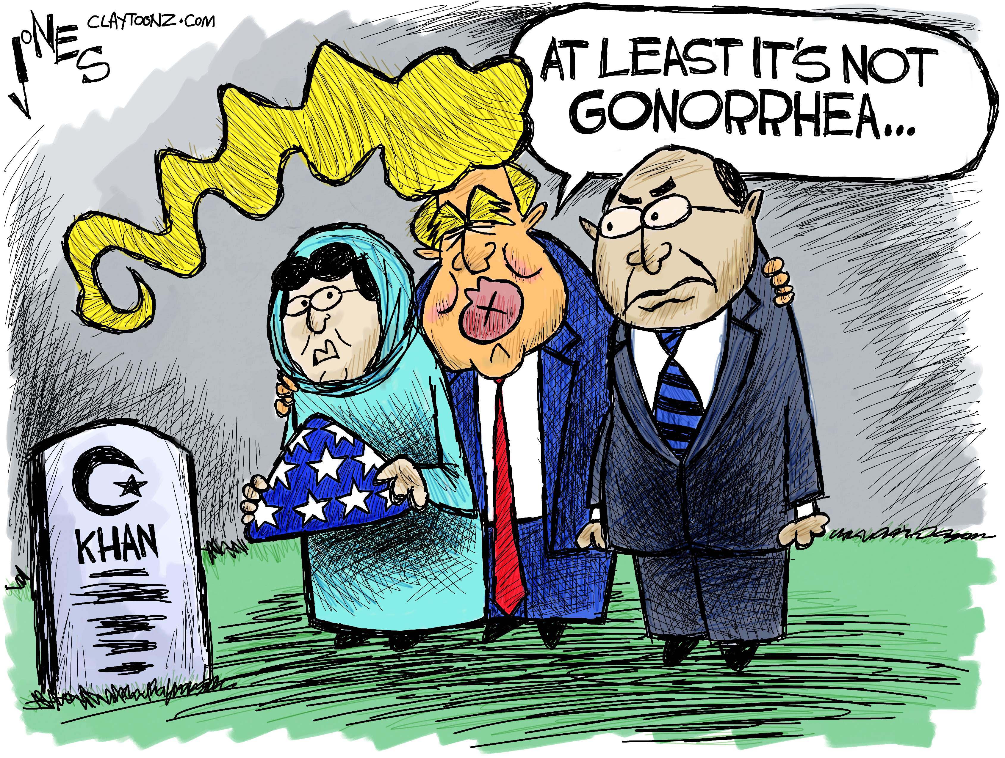 Khan’s son was trained to use a weapon to serve his country and died in Iraq during his service. Trump’s sons use guns to shoot big game animals on African reservations. I don’t think Trump should get into a contest about sacrifice.