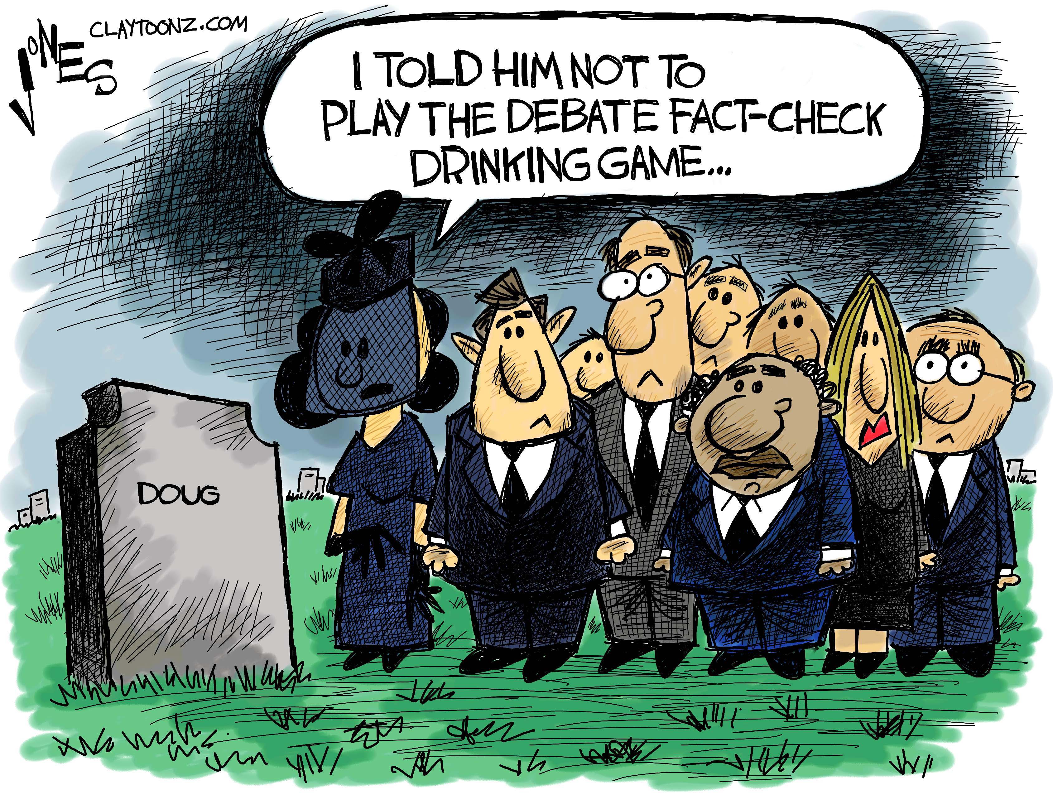 Don’t play a drinking game during the debate where you take a shot every time you hear a lie. New livers are really hard to come by but you could probably buy one from the Trump Foundation.