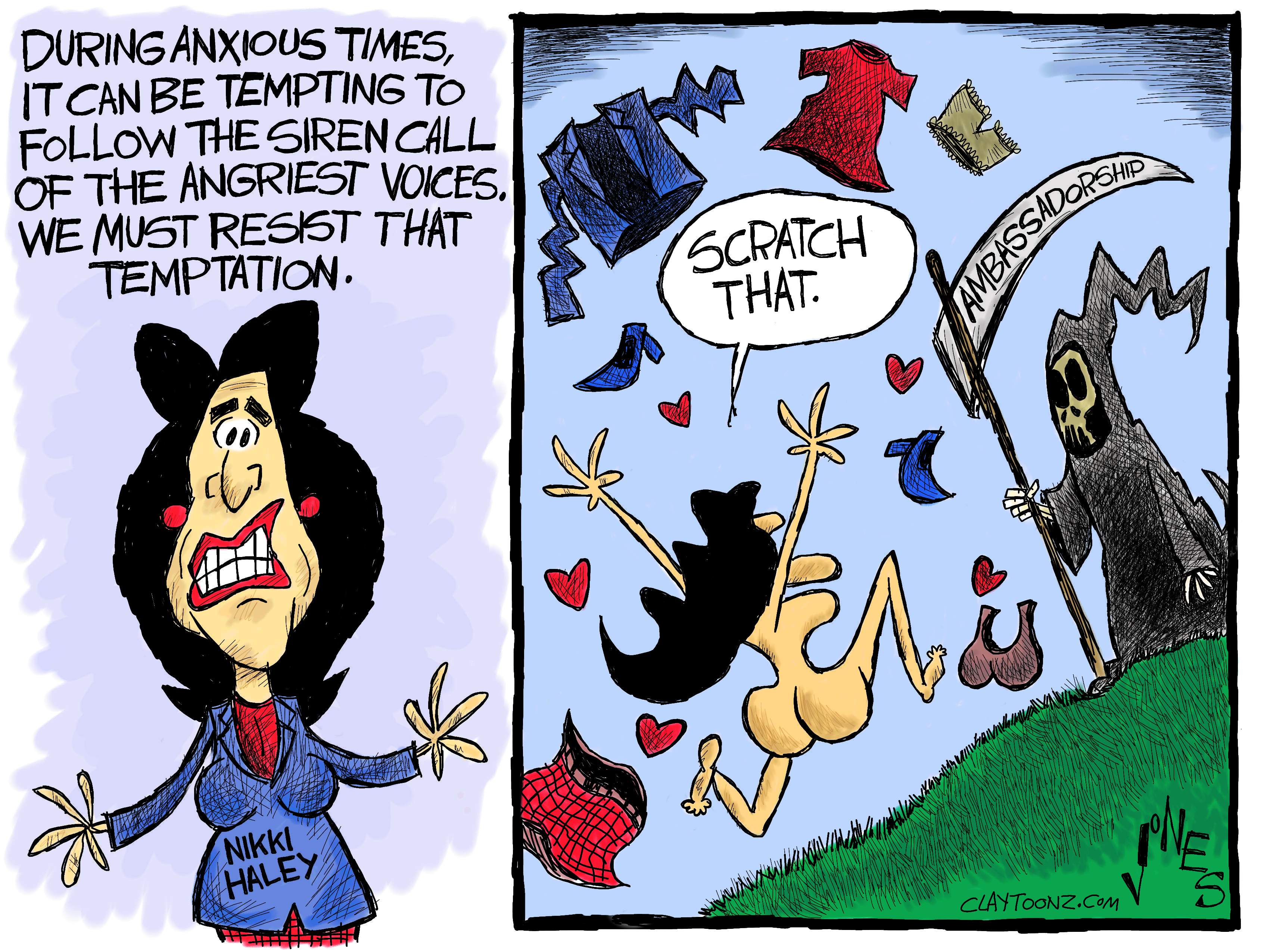 The statement in the first paragraph was delivered by South Carolina Governor Nikki Haley as part of her response to the State of the Union delivered by the president. A lot of Republicans were very unhappy with it. Nikki was standing her ground. She endorsed Ted Cruz, then Marco Rubio and wasn’t having any of Trump’s hatred. She was resisting his “siren call of hatred.”