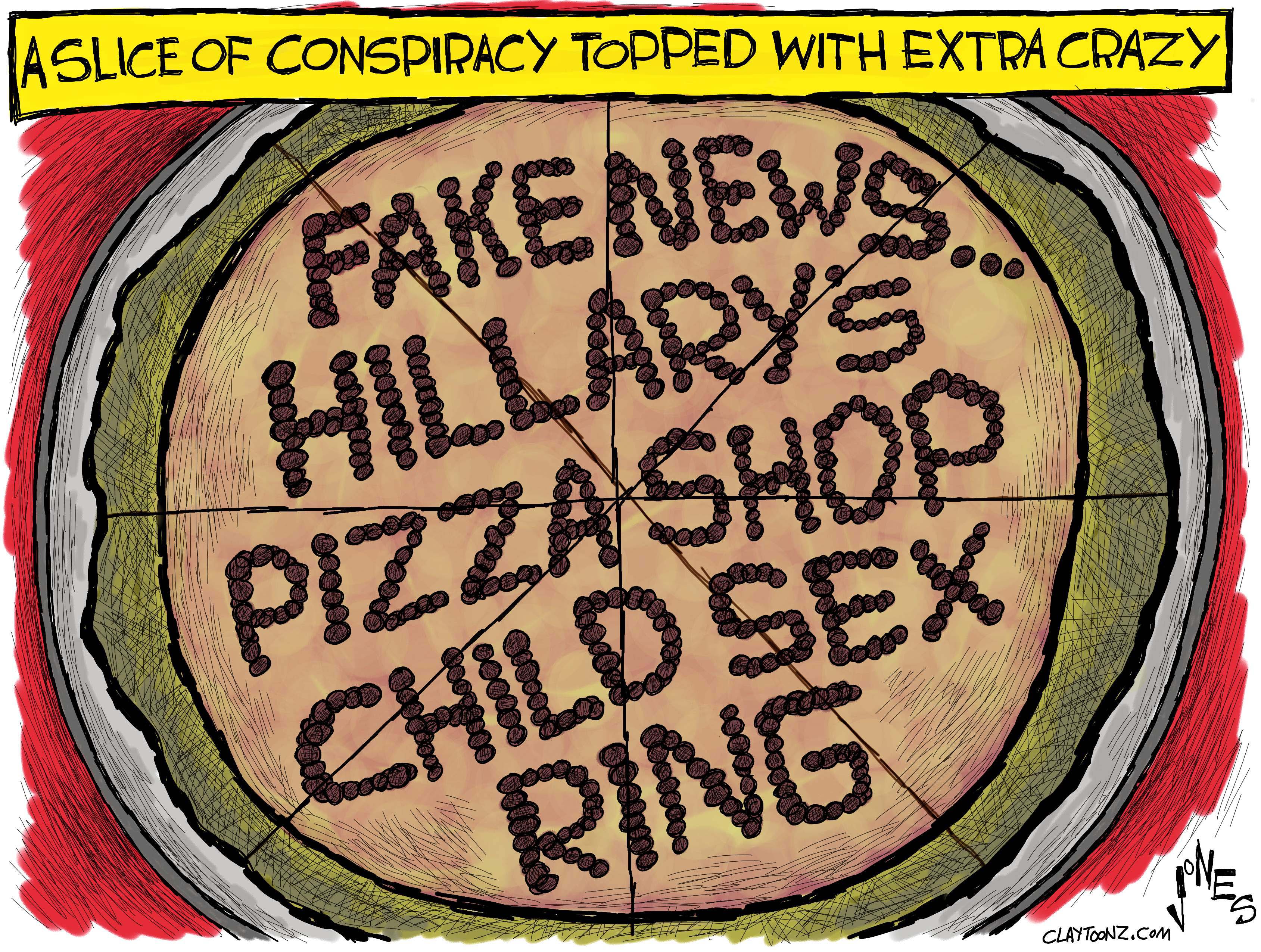 You would think that you don’t have to be the most skeptical person in the world to be suspicious of a story about a presidential candidate running a child sex ring out of a pizza parlor. At the very least a normal person would check into it and discover it’s total crapola within about twelve seconds. Conservatives don’t verify. Instead they spread the story around until a crazed lunatic drives from North Carolina to Washington with a gun and starts shooting at Comet Ping Pong, which actually happened.