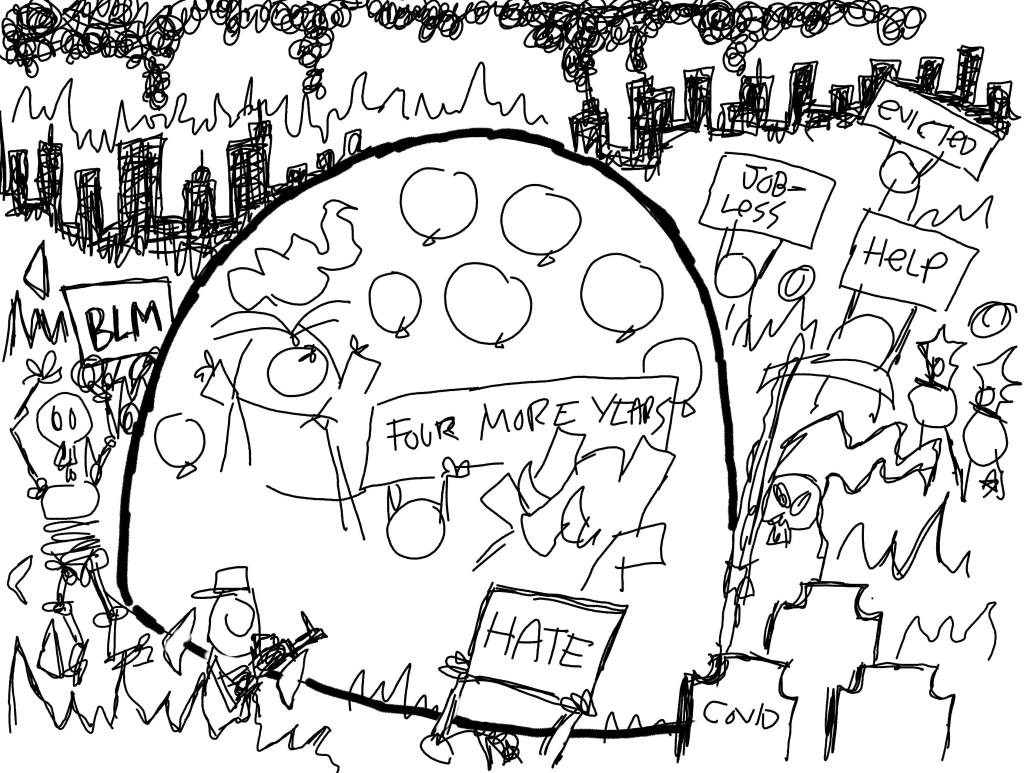 Tip Jar: This pandemic is hitting everyone, including your favorite goofy cartoonist. I have lost clients and I’m afraid I might lose more. The PayPal button has always been included here for those who can and want to voluntarily support what I do. I understand this time is hard on everyone. If you can’t, don’t contribute. Take care of yourself and your family first. But, all and any help is greatly appreciated and it helps keep me going. Think of me like a street performer busking out tunes on a corner (I won’t play “Wonderwall.” I promise). If you like the tune, or in this case, toon, throw a buck into the tip jar. It’ll help me play another song, draw another toon, write another blog, make another video, and post another snarky post on social media. It’ll help keep me alive. You can also order a signed print for $40. And if you don’t like the PayPal option, you can snail mail it to my P.O. Box.