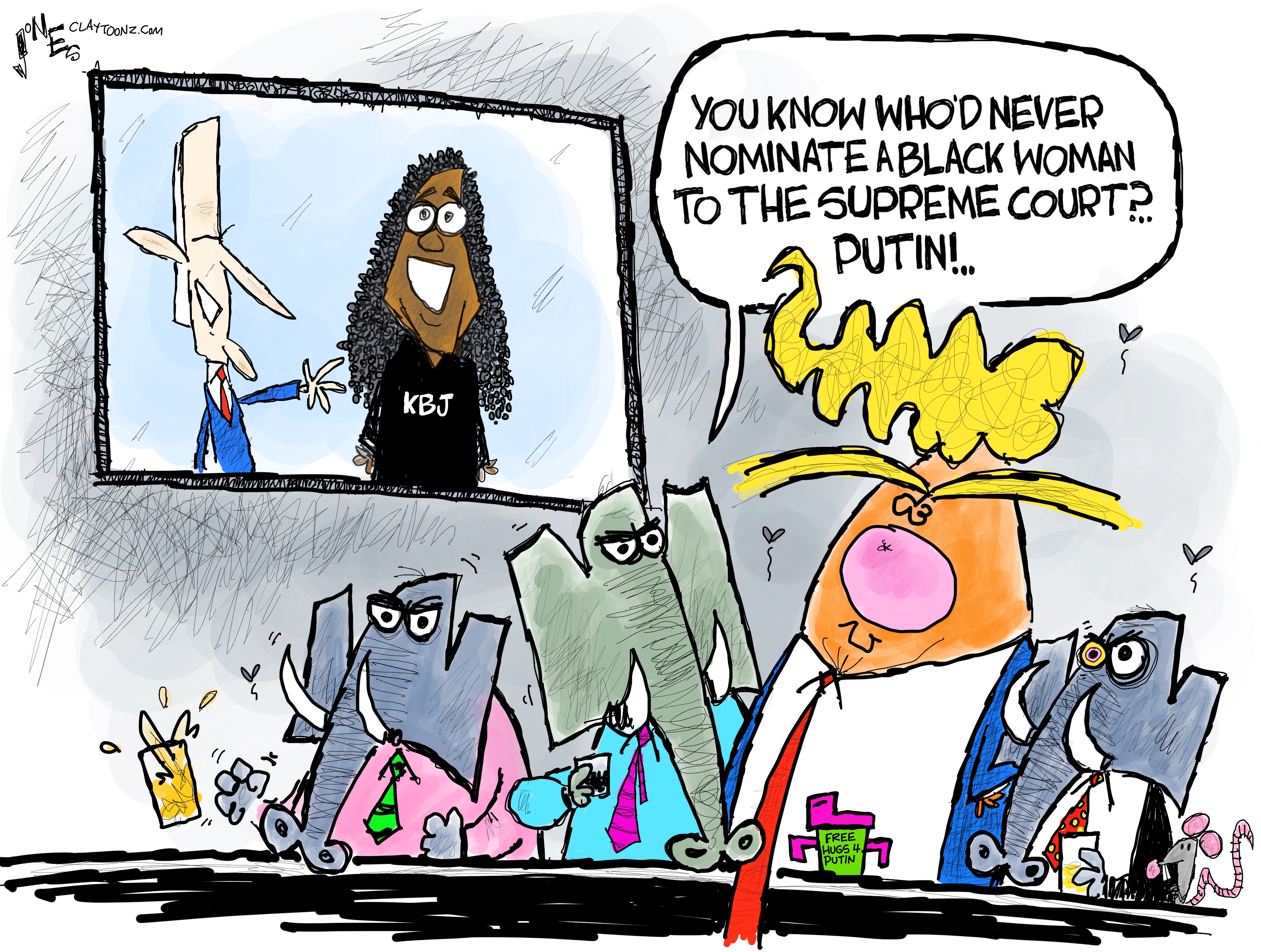 Republicans are taking a few minutes away from focusing on repeating Russia propaganda to attack KBJ as being a “radical.” What’s so “radical” about her? I think for Republicans, the “radical” part is she doesn’t look like them.