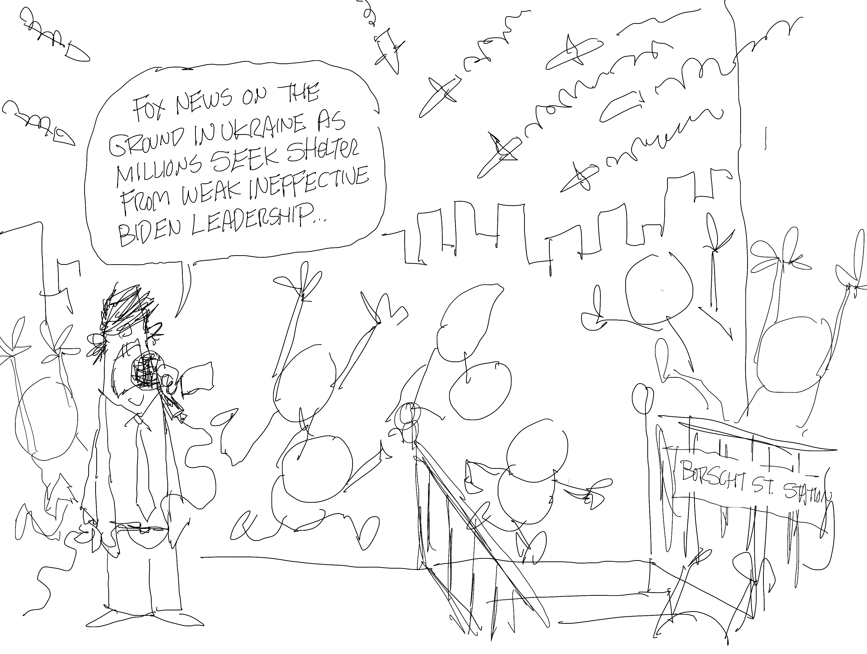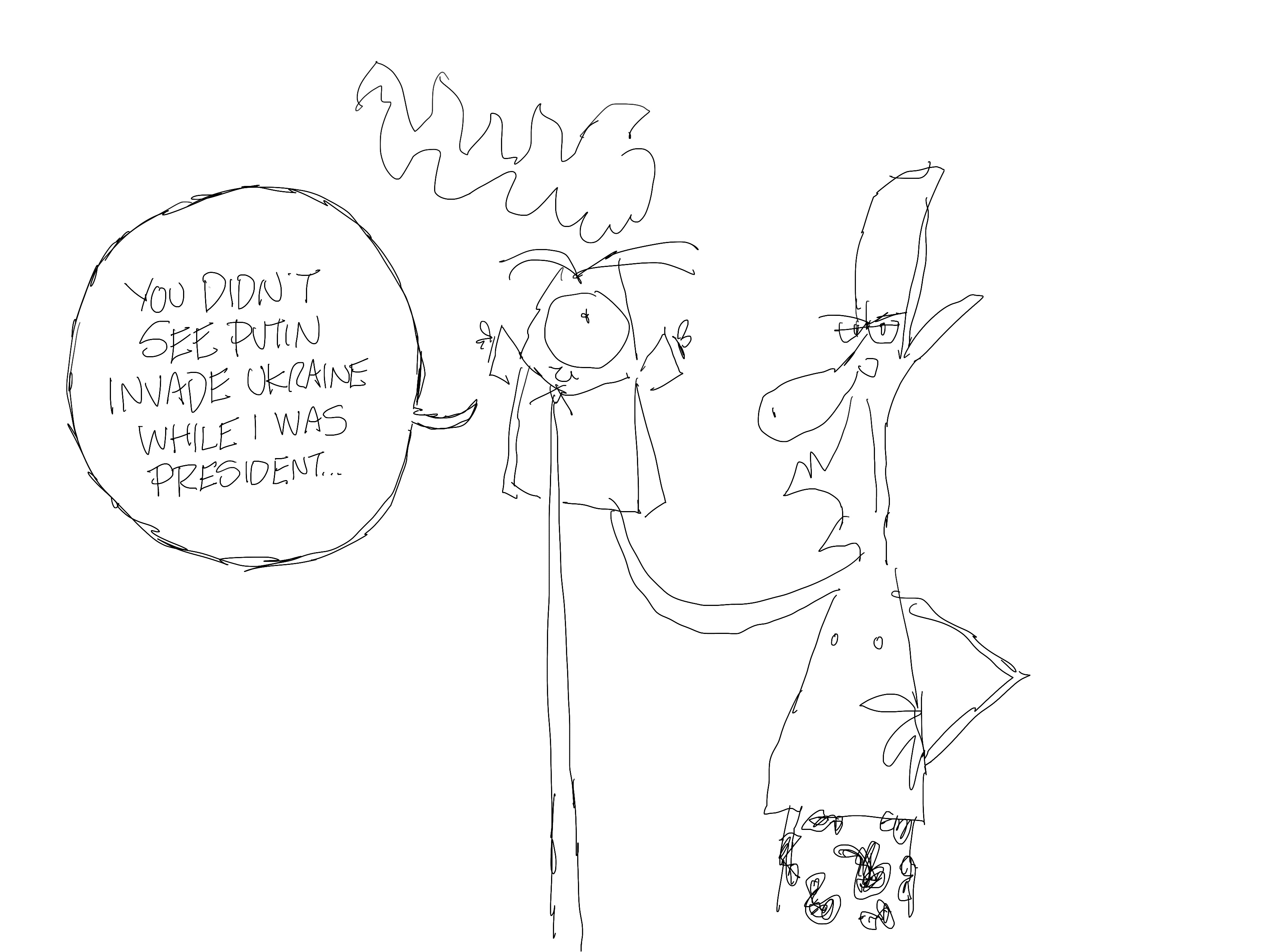 I felt I needed a cartoon blaming Putin and only Putin. I drew this for my clients and got a few comments asking why Trump wasn’t in the cartoon. I don’t want to draw Trump just to draw Trump. I still haven’t seen Dr. Strangelove.