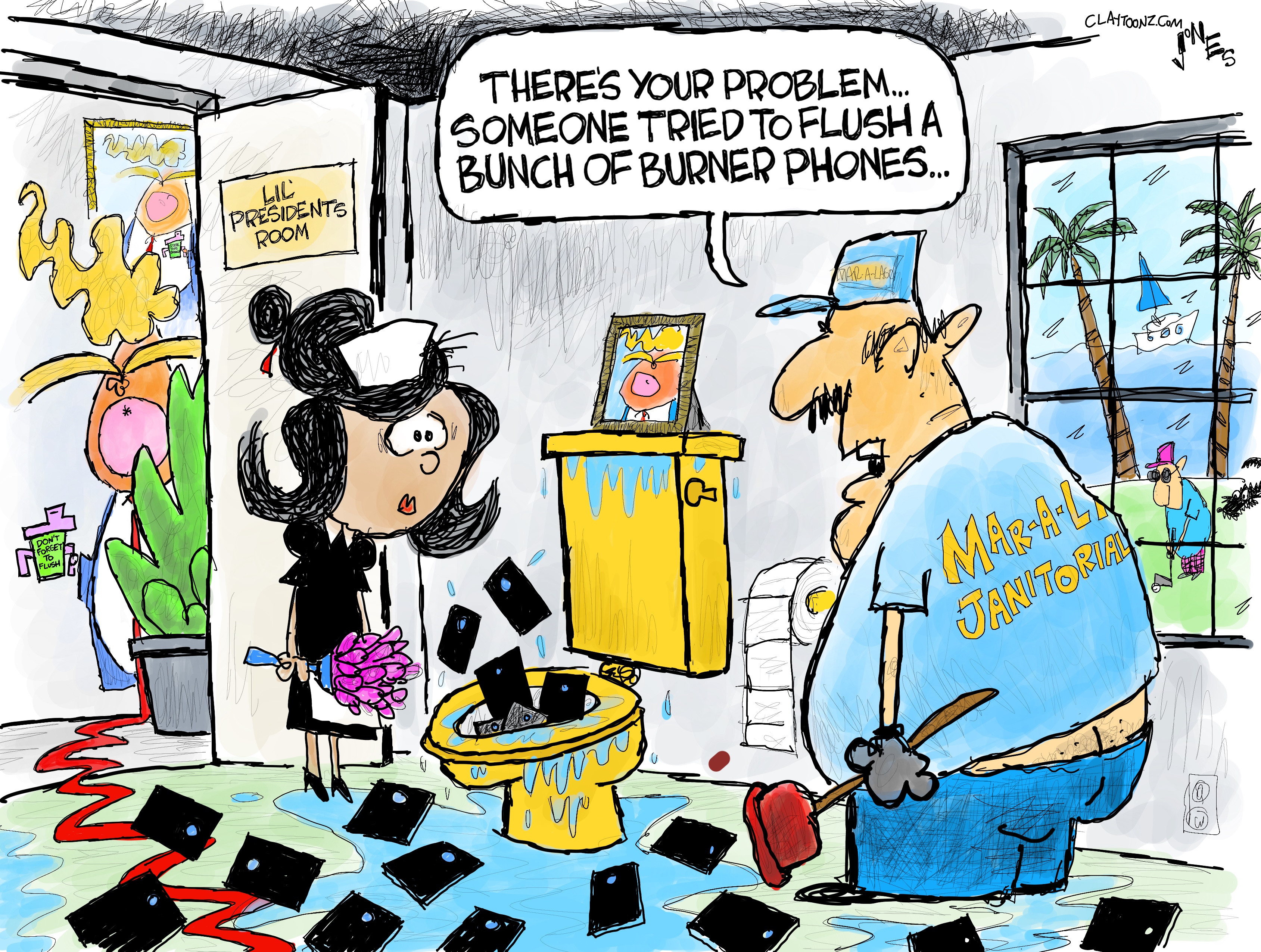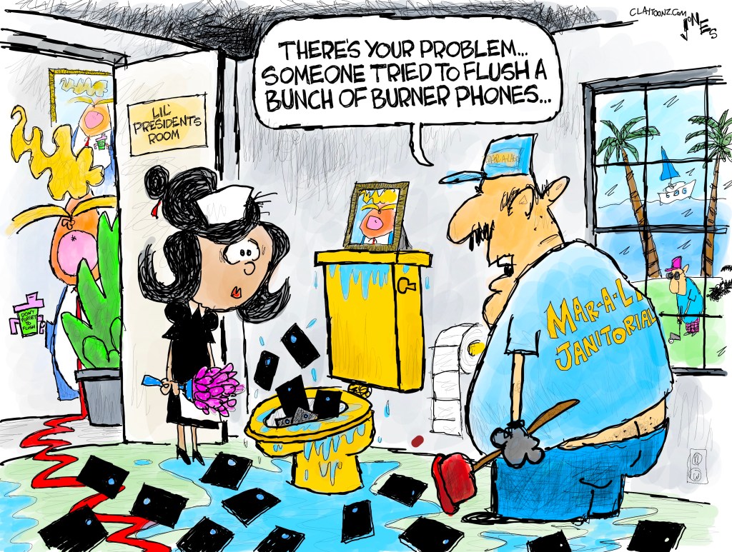 I’m not talking about the calls to McCarthy, Pence, or Senator Dumbass. I’m talking about the calls Donald Trump made that we don’t know about. Who else did he call? What was he organizing? Did he call the goon counsel set up in a nearby hotel that had planned out and orchestrated the attack? Was he calling Congressman Jim Jordan for Jordan to later say, “I don’t know when we talked”? Was he calling Miss Chloe, the 1-800 pyschic to see if she thought he’d be reinstated? Was he calling to see if the terrorists had enough rope to hang Mike Pence? Was he calling Putin to tell him he’s a genius? Was he calling more secretaries of state to tell them to “find the votes”? Was he calling Mar-a-Lago to tell them to install the new MAGA-load power toilets so he wouldn’t have to flush classified documents and criminal evidence 15 times? Maybe Donald Trump was calling one of those places that cashes checks, gives out payday loans with a 400 percent interest rate, gives out cash for car titles, and sells burner phones…so he could order more burner phones.