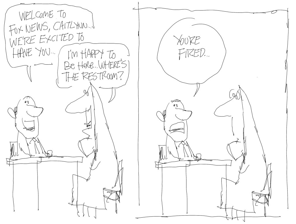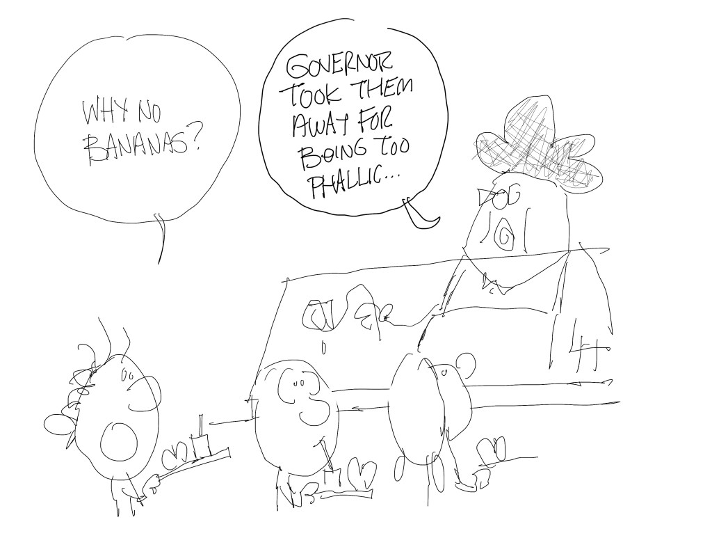 I made an official cartoon from this one and I think it was my weakest from last week. But, I still like it and think it’s a good cartoon. I just think all my other stuff was better. I didn’t know if this was going to work and I decided against using it. Laura, who is one of my proofers, wasn’t sure she got it but convinced me to go with it. Hilary, my other proofer, didn’t get it. I took a leap of faith with it. I didn’t see any comments from confused readers after it was published.