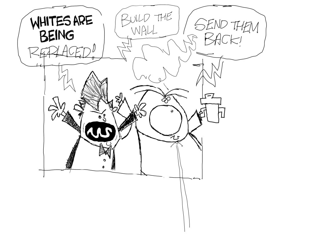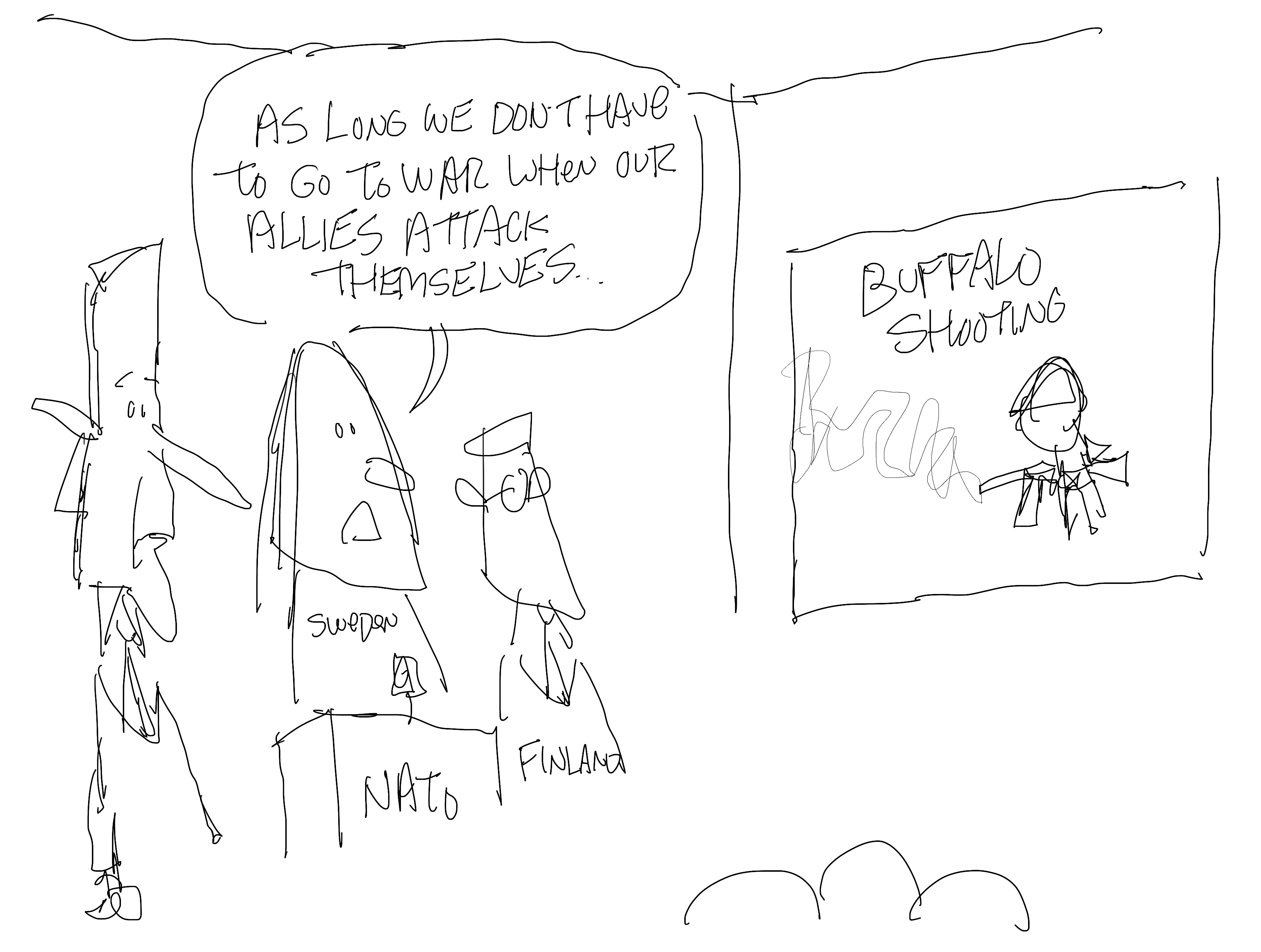 I did this cartoon after the shooting in Buffalo. While I was drawing that one which only featured Tucker, I took a break from it to draw this version with Trump. I felt it was strong with just Tucker and went back to the original drawing and left this one hanging incomplete. This was not a pitch to CNN. I did this one several days before I had to start drawing for them.