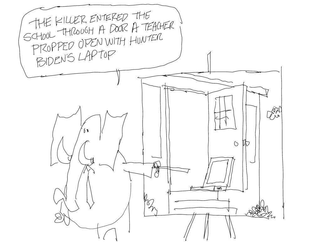 I was going to draw this too but I wasn’t in love with it. Maybe I didn’t do the Joe Biden one because I’ve been drawing too many TVs in bars cartoons.