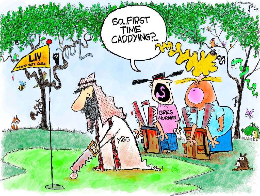 It’s no surprise that Vince McMahon, the founder of the WWE and creator of Wrestlemania has a price to overlook human rights violations. I mean, this guy has been making billions for decades in an industry that sends his performers to early graves. Seriously, wrestlers have a habit of dying before 60. And it’s no surprise that Donald Trump has a price to ignore human rights violations. He displayed that when he was gooning up the White House and hosted MBS in the Oval Office. And since the PGA does have somewhat of a conscience and has pulled out of holding tournaments at Trump’s crappy golf resorts over his racism and insurrections, he has no problem taking LIV’s blood money to host a tournament at Doral.