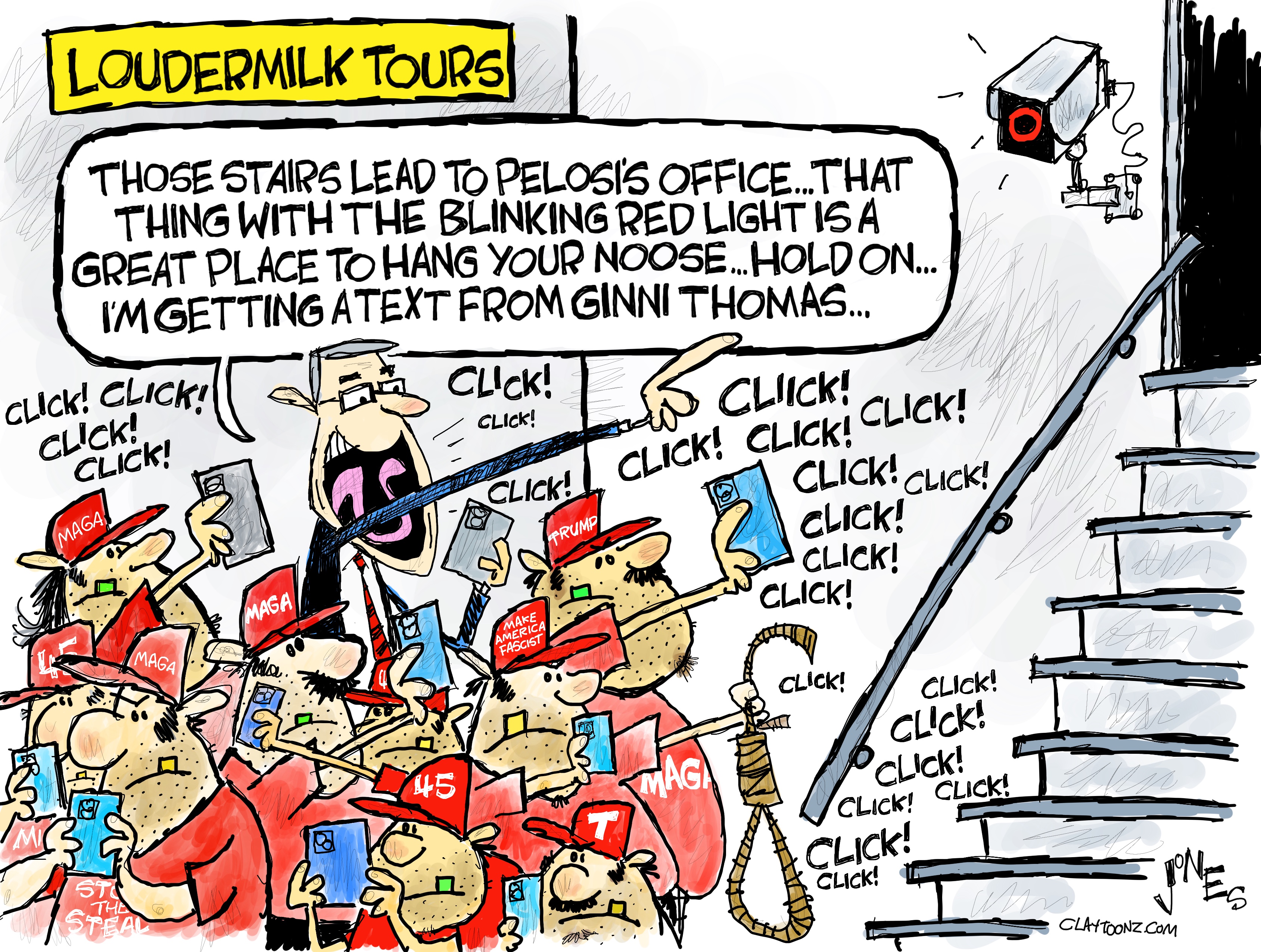 There have been a few developments since my last cartoon and blog on Republican congressman Barry Loudermilk giving tours to white nationalist Trump terrorists the day before the January 6, 2021 insurrection to overturn an election and make our nation an autocratic fascist country governed by a Cheeto potentate.