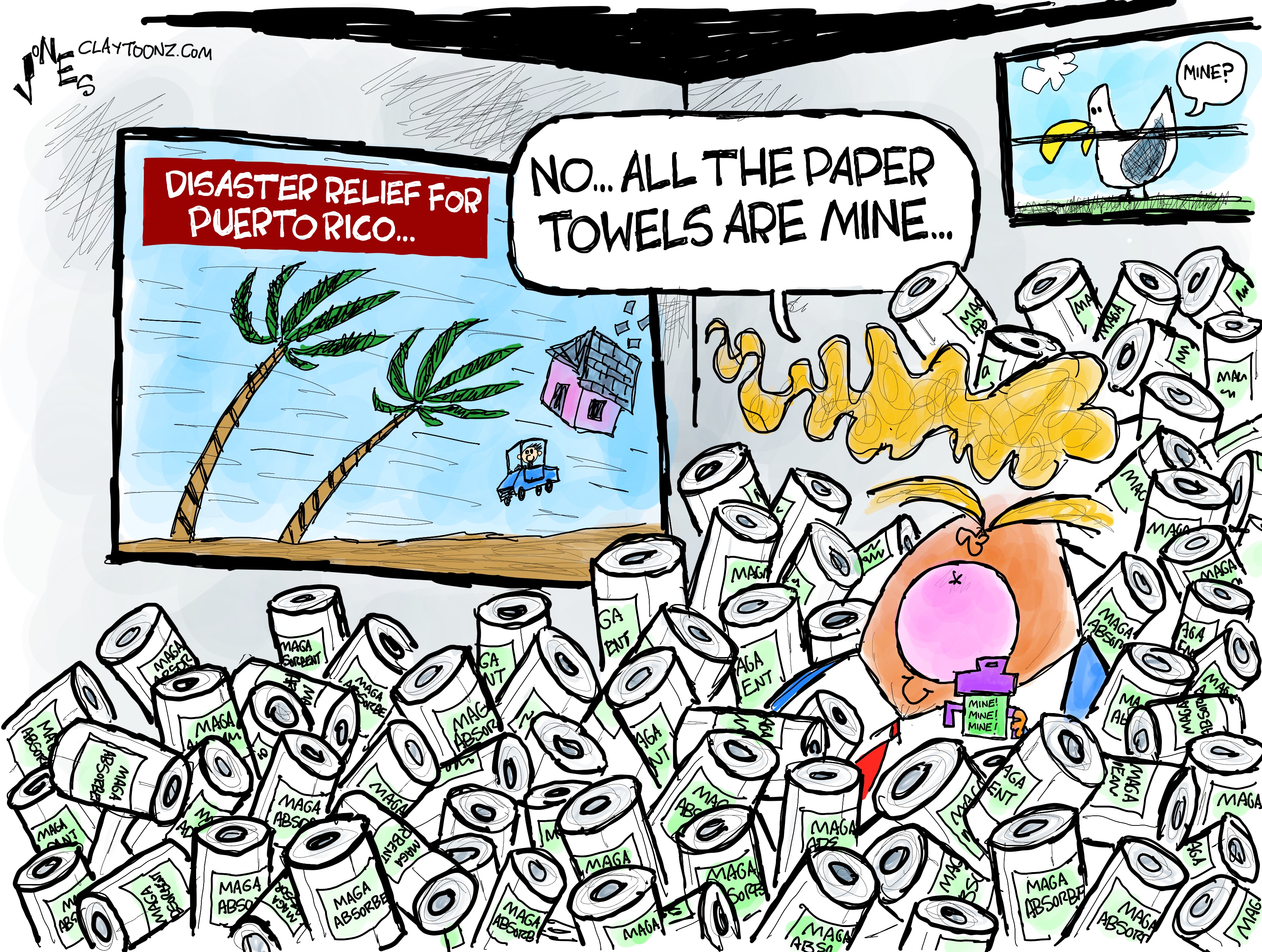 How can I ever look at paper towels the same way again? … “When Hurricane Maria hit Puerto Rico, Donald Trump wasn’t aware that the island was a U.S. territory or that it was even an island. He didn’t know the island had a governor and instead, tried to call Puerto Rico’s president. Unfortunately for Puerto Rico, and the rest of us, its president at the time was Donald Trump (sic).”