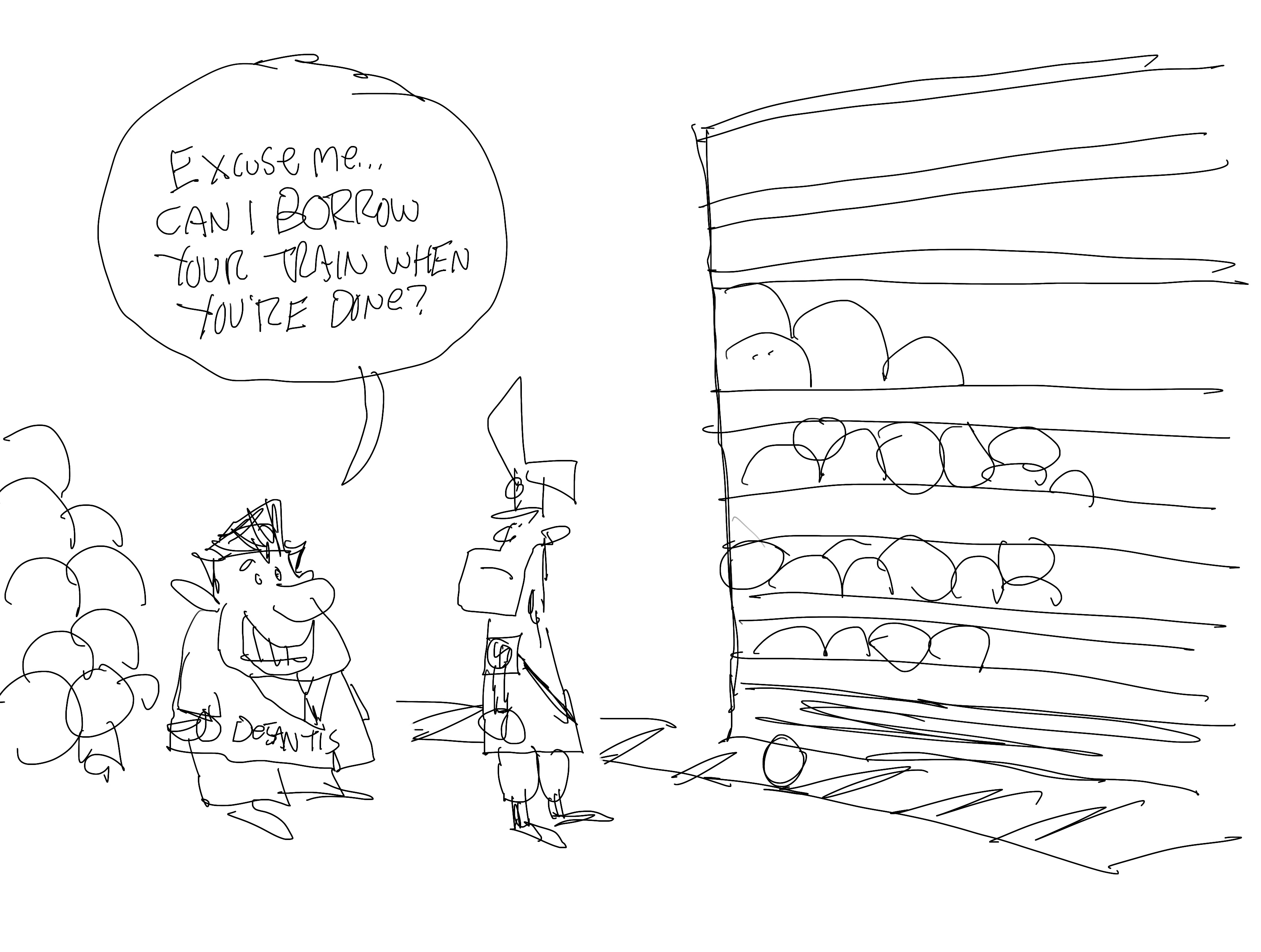 I nearly drew this one but went for the drive-thru window idea instead. I think I saw another cartoon similar to this one a few days ago.