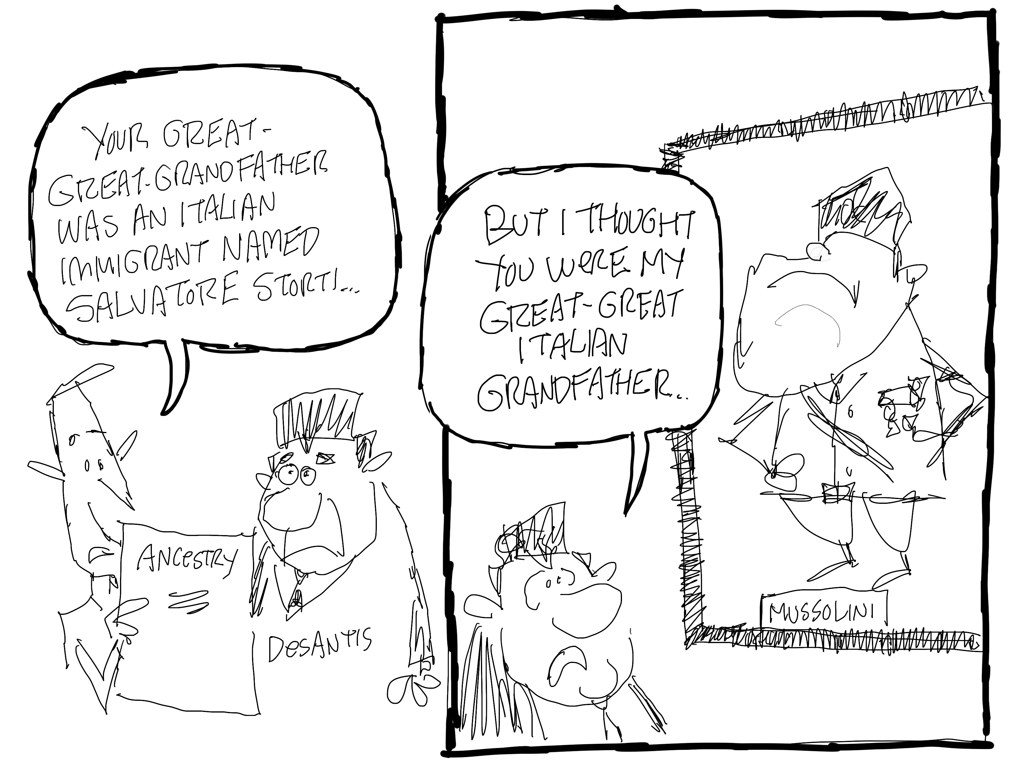 I made this one into a real cartoon for my newspaper clients. I called it “Great-Great-Fascist Grandfather.”