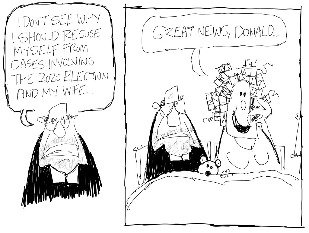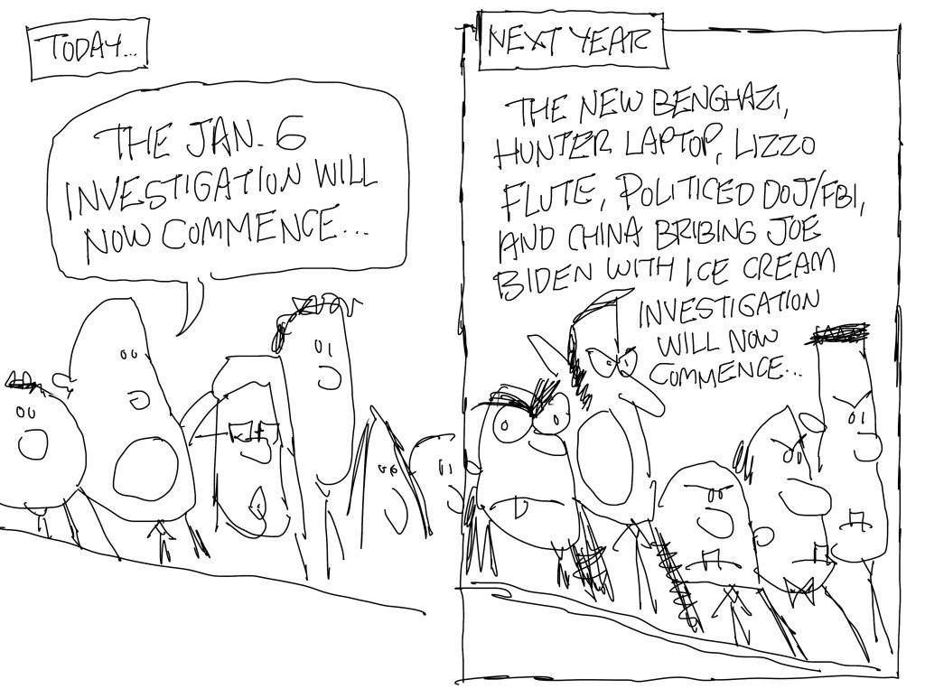 I drew this on Friday, the day a Qanon terrorist instigated by Republican demonization attacked Nancy Pelosi’s husband. I had already drawn one cartoon on the subject and was planning to do this the next day, but then I went with something else with hammers. I still like this one. Republicans were all like, “it’s not our fault so don’t blame us…also, check out this meme I shared of a hammer and some tightie-whities underwear.