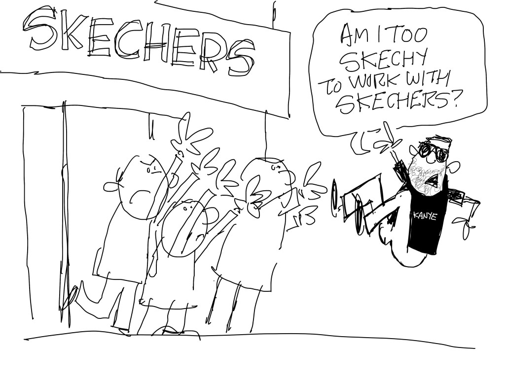 Ye got his ass tossed out of Skechers’ HQ. I just thought this was too funny. I don’t think I sent this to my CNN editor as it was really just for me to goof off when I should’ve been focusing on the assignment. I do that.