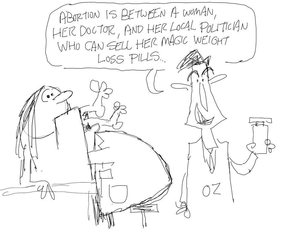 This was actually drawn over two weeks ago but I saved it because I knew I’d want to use it before the primaries, and I did that this week. I had to take out the bit with the ice cream because in between drawing the rough and the completed cartoon weeks later, I used the ice cream line.
