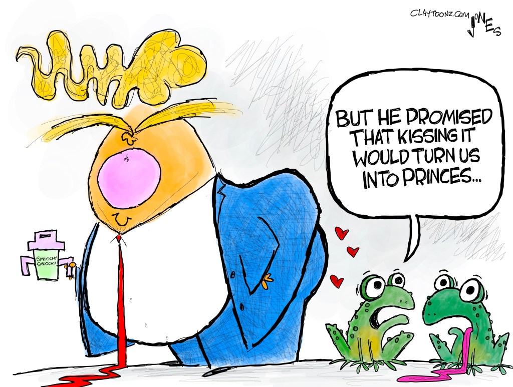 Signed prints: The signed prints are just $40.00 each. Every cartoon on this site is available. You can pay through PayPal. If you don’t like PayPal, you can snail mail it to Clay Jones, P.O. Box 3721, Fredericksburg, VA 22402. I can mail the prints directly to you or if you’re purchasing as a gift, directly to the person you’re gifting.