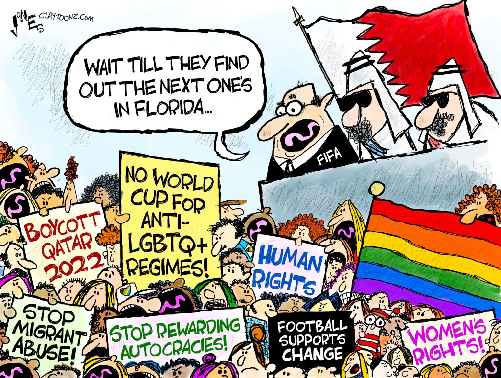 There have been a lot of protests against FIFA holding this year’s World Cup tournament in Qatar, a Persian Gulf nation with a horrid record on human rights, whether it comes to women, LGBTQ+, migrants, etc. Qatar is an autocratic regime that also suppresses a free press. Part of FIFA’s excuse for holding the tournament there is that all the nations in the Persian Gulf region are like this.