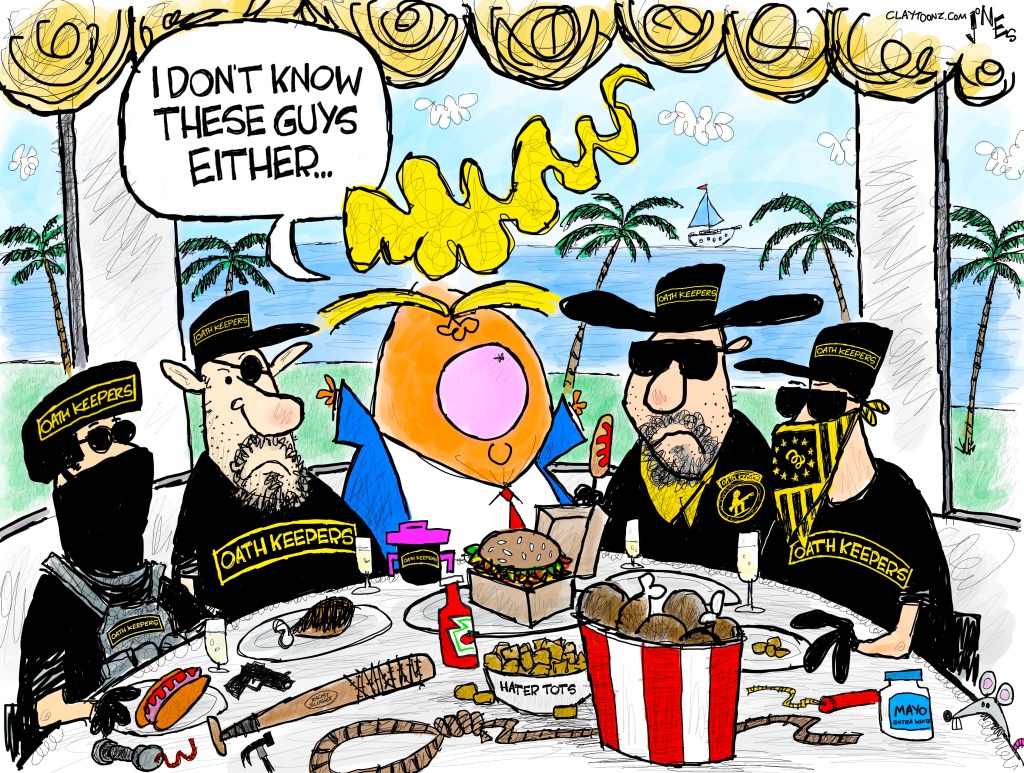Oath Keepers founder Stewart Rhodes and his colleague Kelly Meggs were found guilty yesterday of seditious conspiracy by a jury after a two-month federal trial. They were also found guilty of obstruction of an official proceeding, along with fellow Oath Keepers Jessica Watkins, Thomas Caldwell, and Kenneth Harrelson. These charges stem from the attack on the Capitol on January 6, 2021, in order to stop Congress from certifying the election of Joe Biden, overthrow the government, and install Donald Trump as an unelected Oompa Loompa Cheeto-stained dictator.