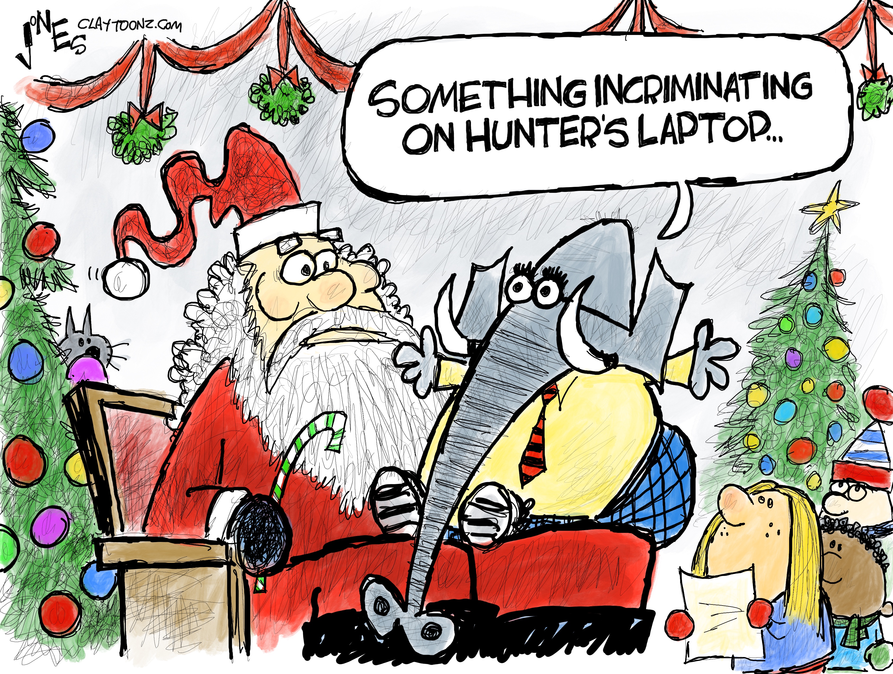 Here’s a Santa’s lap cartoon about Hunter Biden’s laptop. I’m not a big fan of using the Santa’s lap cliché in political cartoons, but I liked the correlation here. Maybe I’m the only one who will get it. But I also wanted to take the opportunity to use Christmas to point out once again that there is NOTHING on this laptop incriminating or that provides any evidence of illegalities by either Hunter or his father, President Joe Biden.