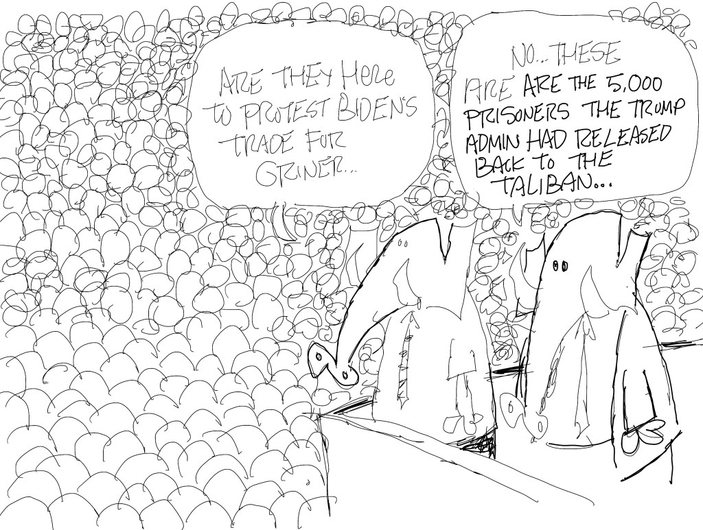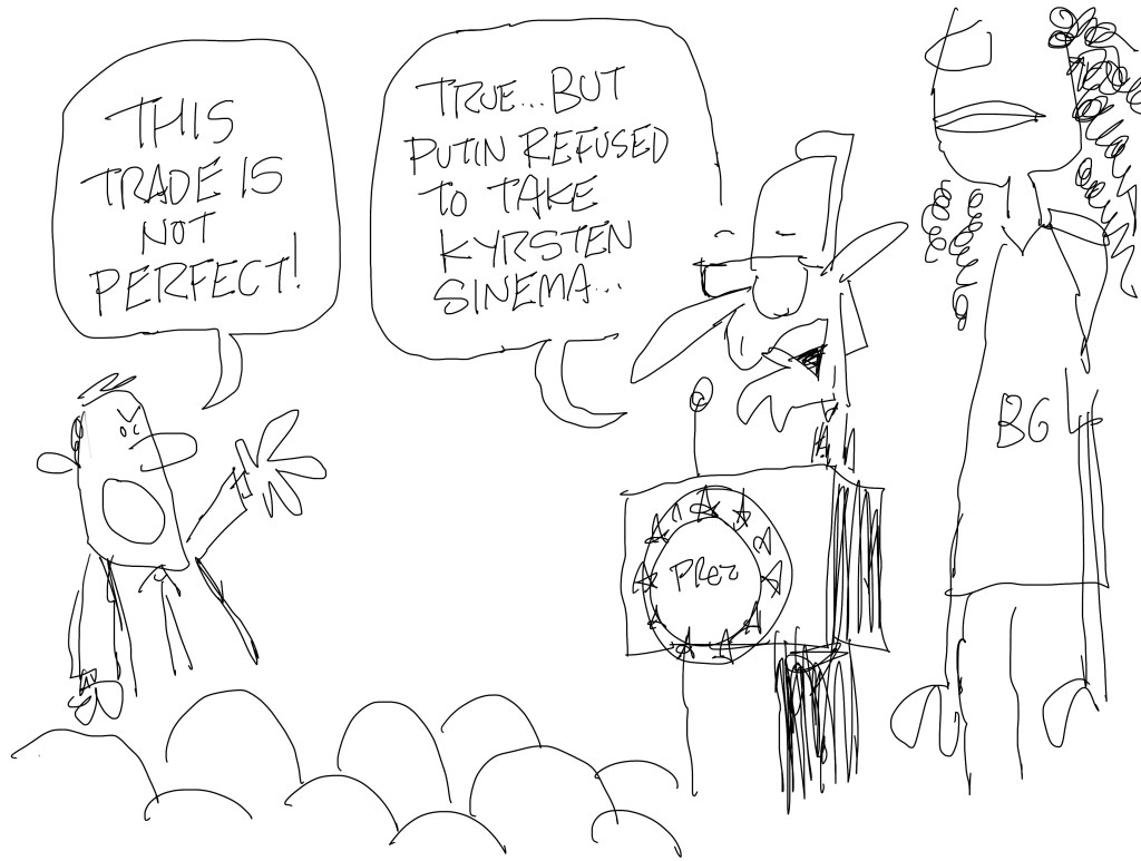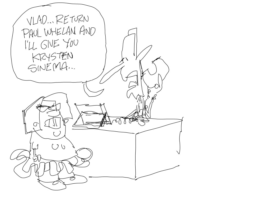 I was told that we were probably going to go with a cartoon on Kyrsten Sinema or Brittney Griner for the newsletter. I tried to do both in one cartoon.