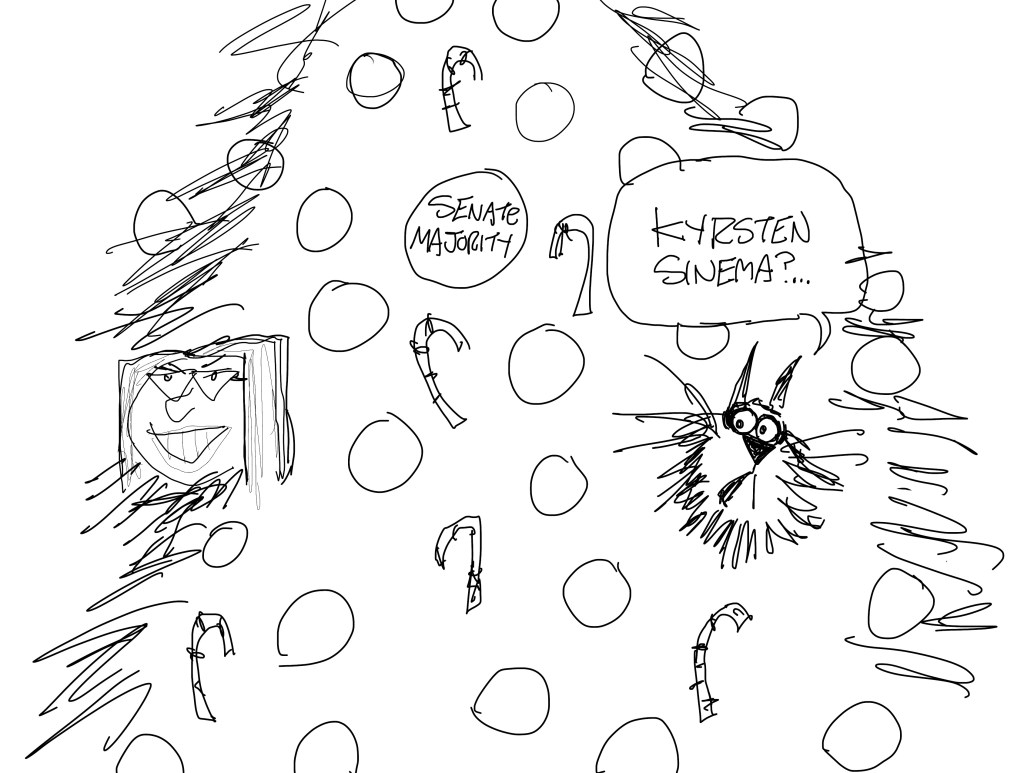 I knew someone would do a Grinch/Sinema cartoon, and I was right. Someone did. His name is Michael. Fun fact: Every other political cartoonist is named Michael. There are only two Clays and we both kick ass, and despite our styles looking nothing alike, I occasionally get tagged with his cartoons. I don’t think he ever gets tagged with mine.