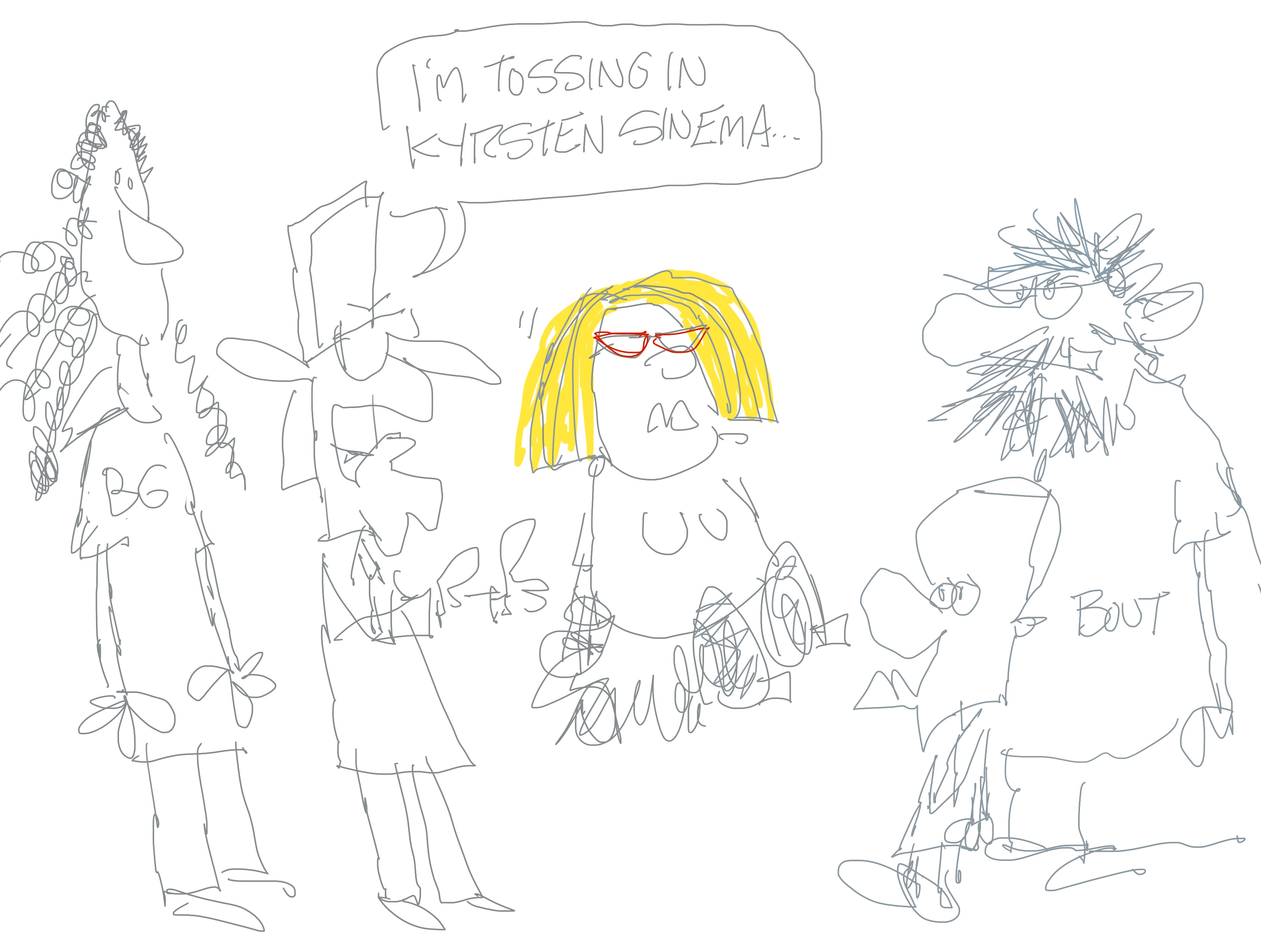 I was told that we were probably going to go with a cartoon on Kyrsten Sinema or Brittney Griner for the newsletter. I tried to do both in one cartoon.